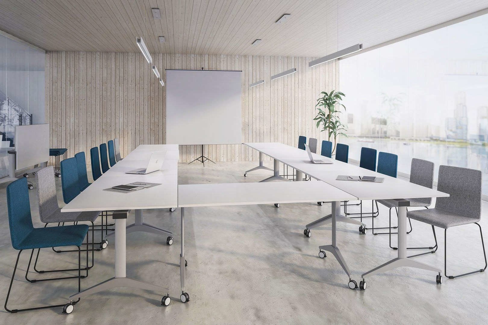Een vergaderruimte altijd in dezelfde opstelling laten staan is niet handig. Soms heb je deze ruimte nodig voor een presentatie en dan is het handig als iedereen naar de presentatie kan kijken zonder het hoofd elke keer te moeten draaien. Met een klaptafel, zoals deze Flip Top van Narbutas kunt u eenvoudig de ruimte omtoveren in de gewenste opstelling en na gebruik zijn de tafels makkelijk te verplaatsen.