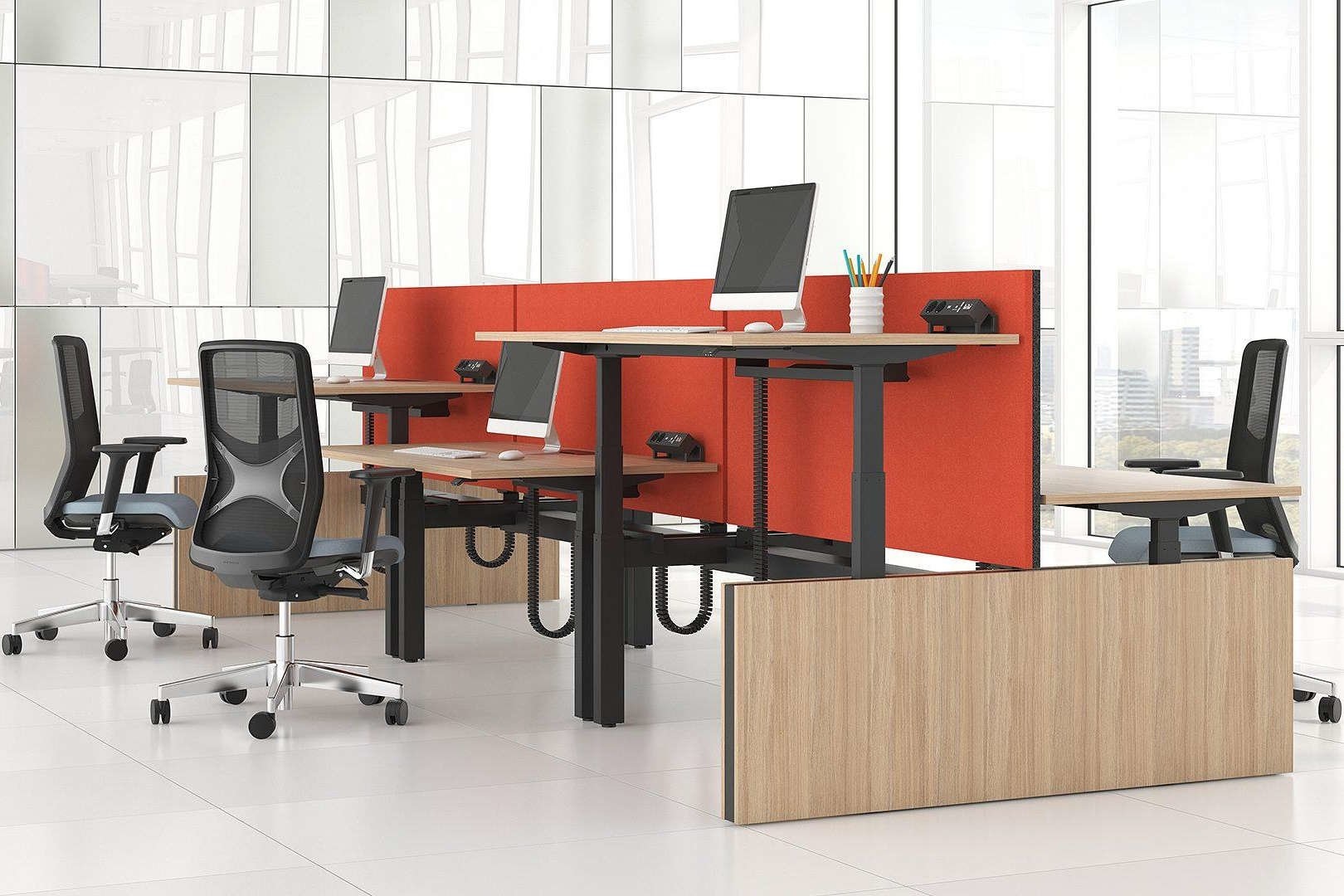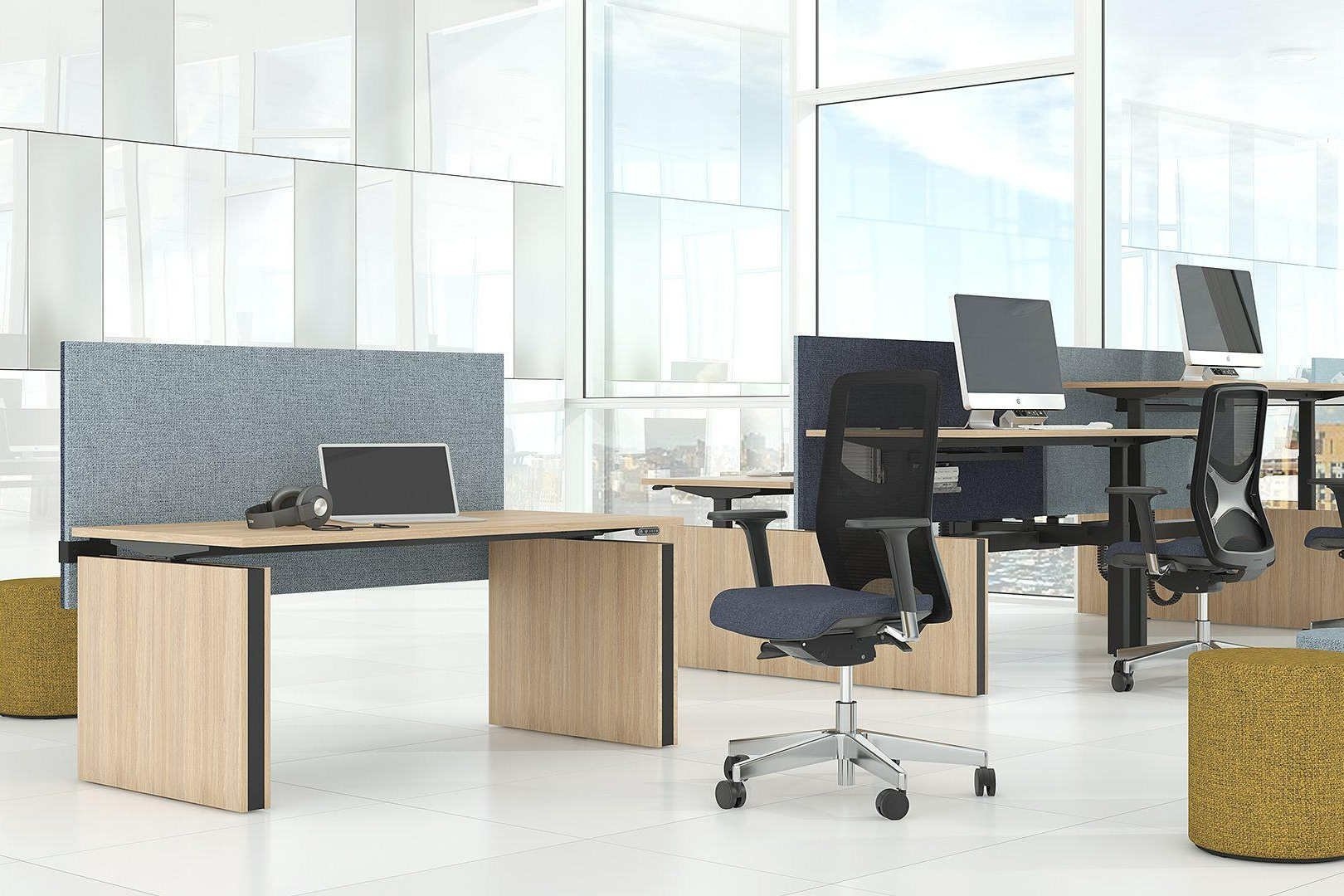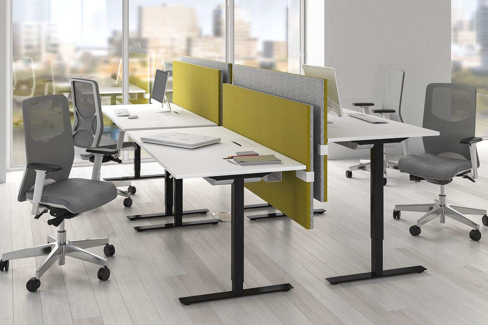 In hoogte verstelbare schermen met akoestische eigenschappen.