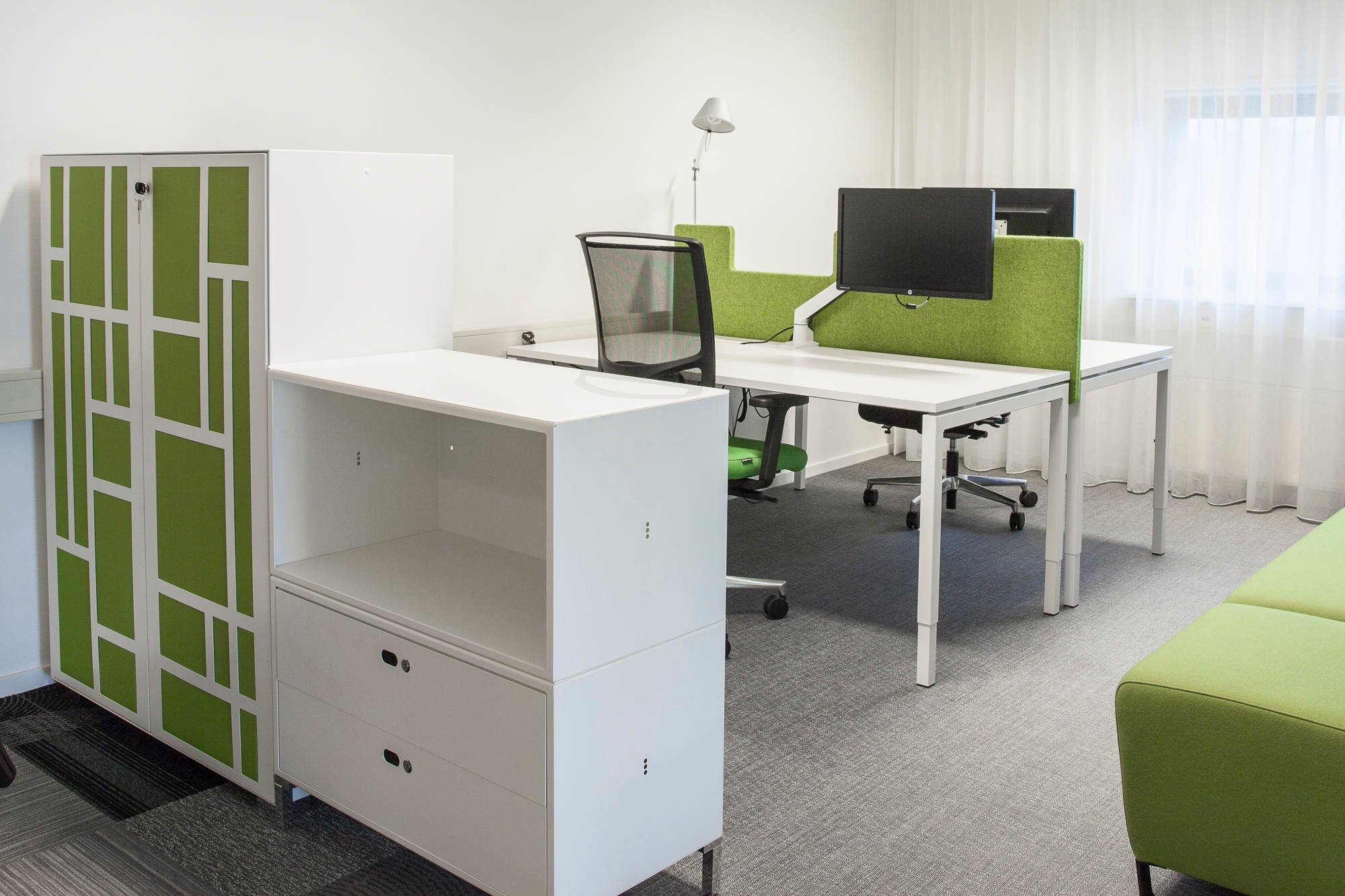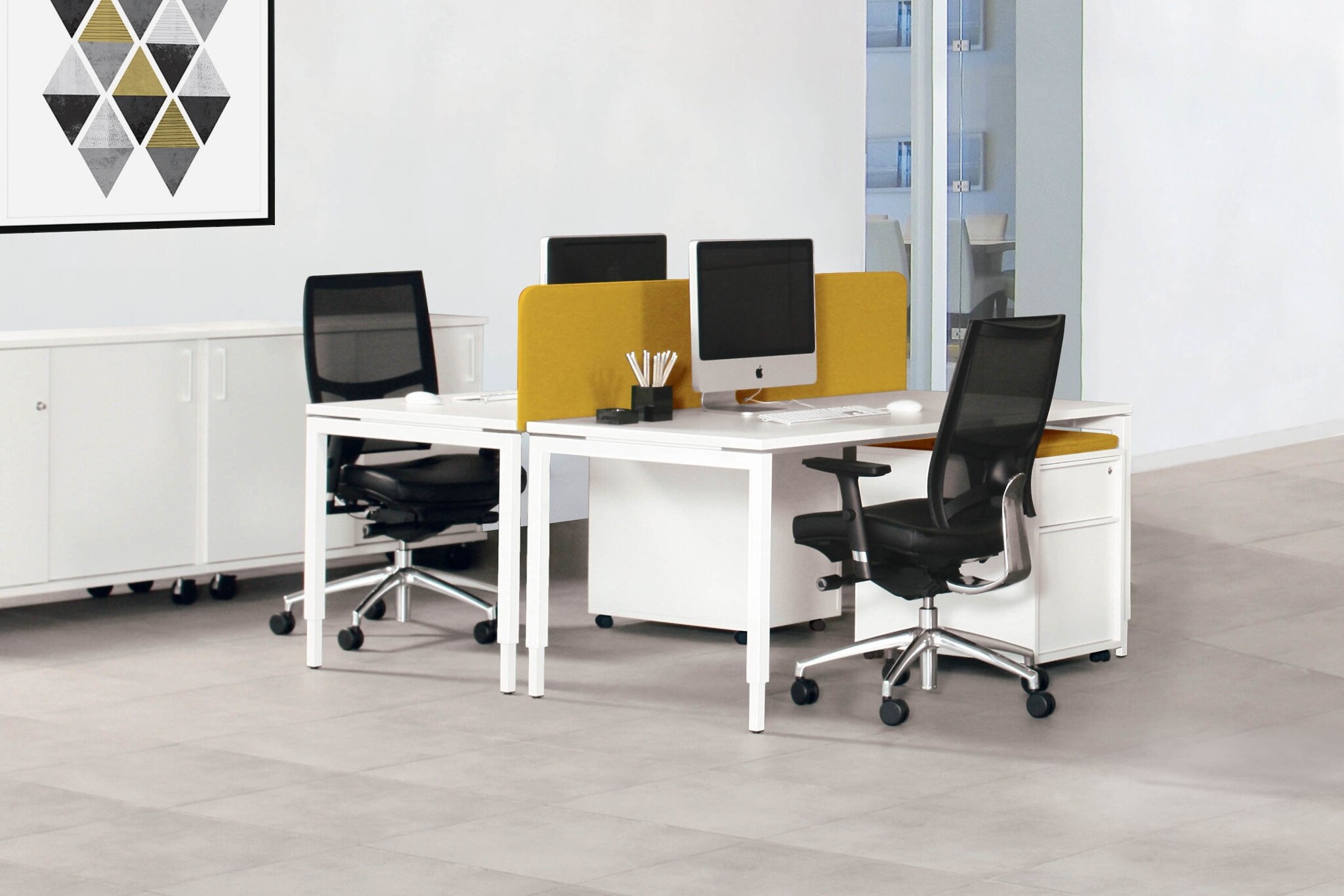 Het melamine blad is leverbaar in wit, gebleekt eikenprint of berkenprint (standaard). Het blad kan ook in MDF zwarte desktop (marmoleum).