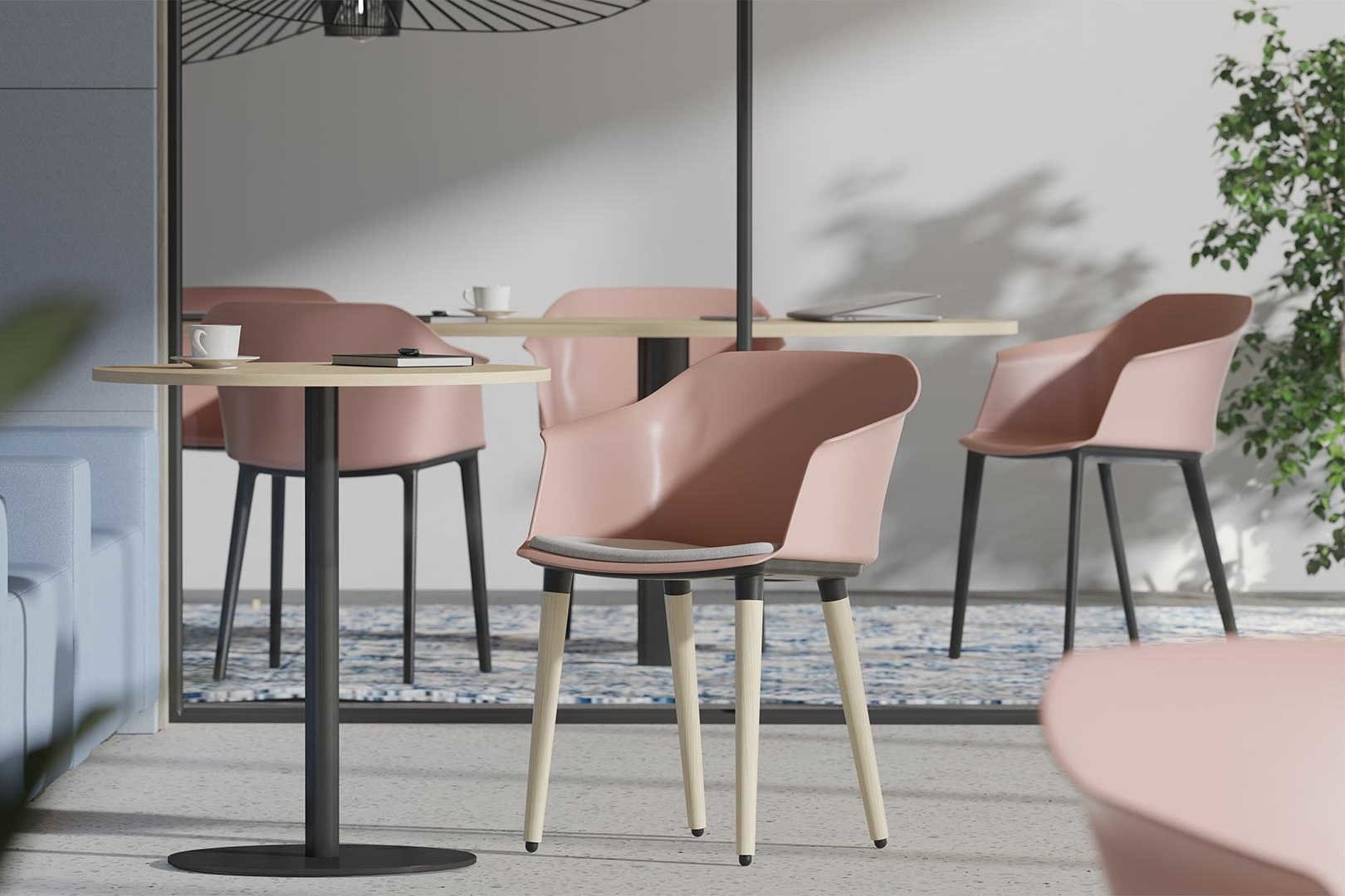 De Narbutas Polytone C stoel is leverbaar met 3 verschillende onderstellen. Wanneer u een warme uitstreling wenst kunt u kiezen voor een houten onderstel. De stoel met een stervoetonderstel op wielen is goed toepasbaar in vergaderruimtes. Laat u door de experts van Tint Office adviseren over de vele toepassingsmogelijkheden van deze Narbutas Polytone C stoelen. Kenmerken van de Narbutas Polytone C stoel