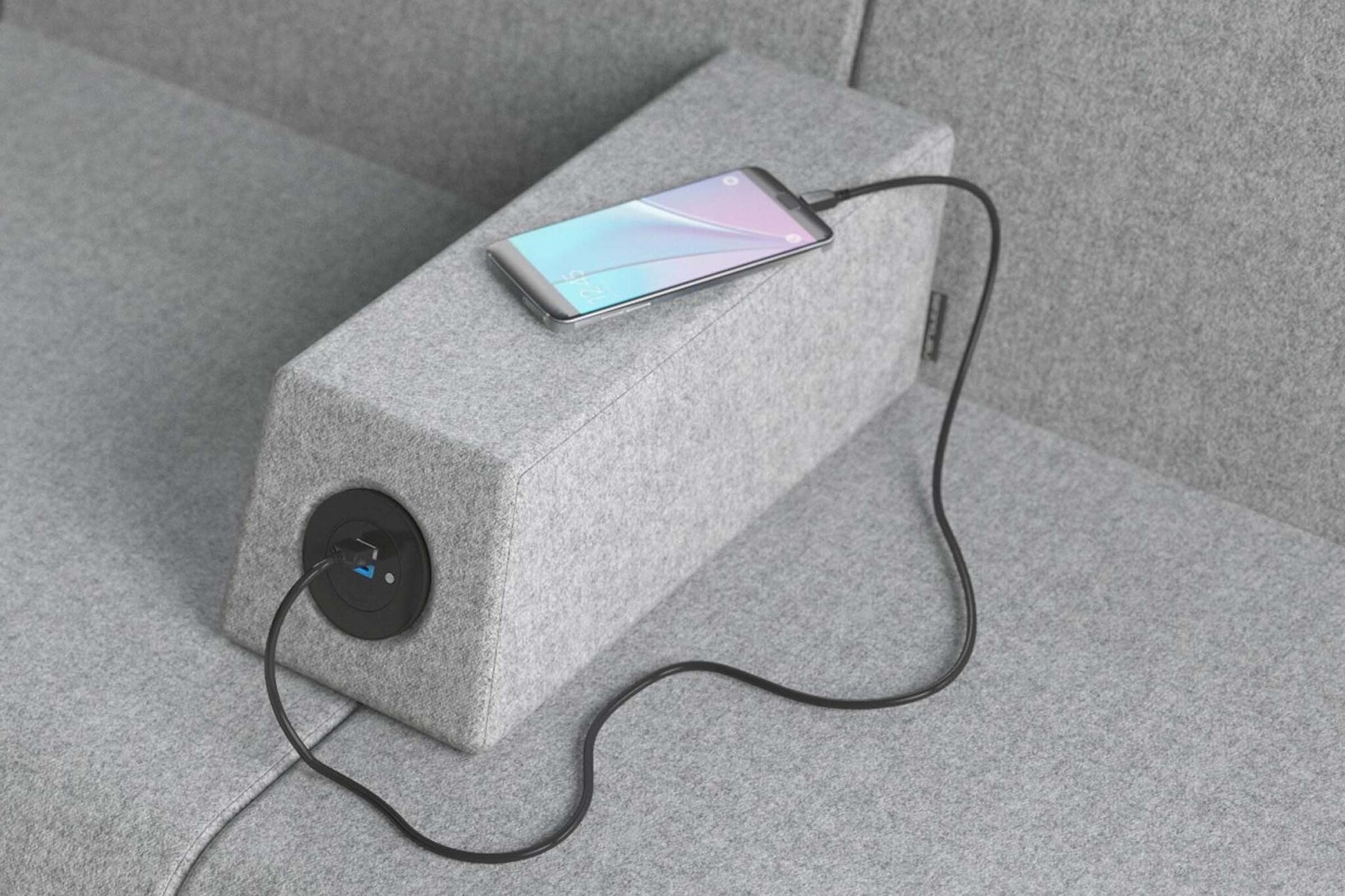 Optionele lage of hoge armleuningen die voorzien zijn van diverse elektrificatiemogelijkheden (stopcontacten of USB-punten) om apparaten op te laten