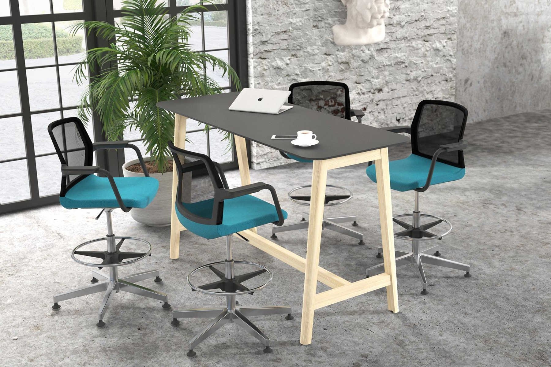 De Narbutas Wind Low-back stoel kan worden toegepast aan een verscheidenheid van werkplekken, of het nu gaat om een zit-sta bureau, een hoog bureau of aan de receptie. Over Narbutas Wind Low-back stoelen
