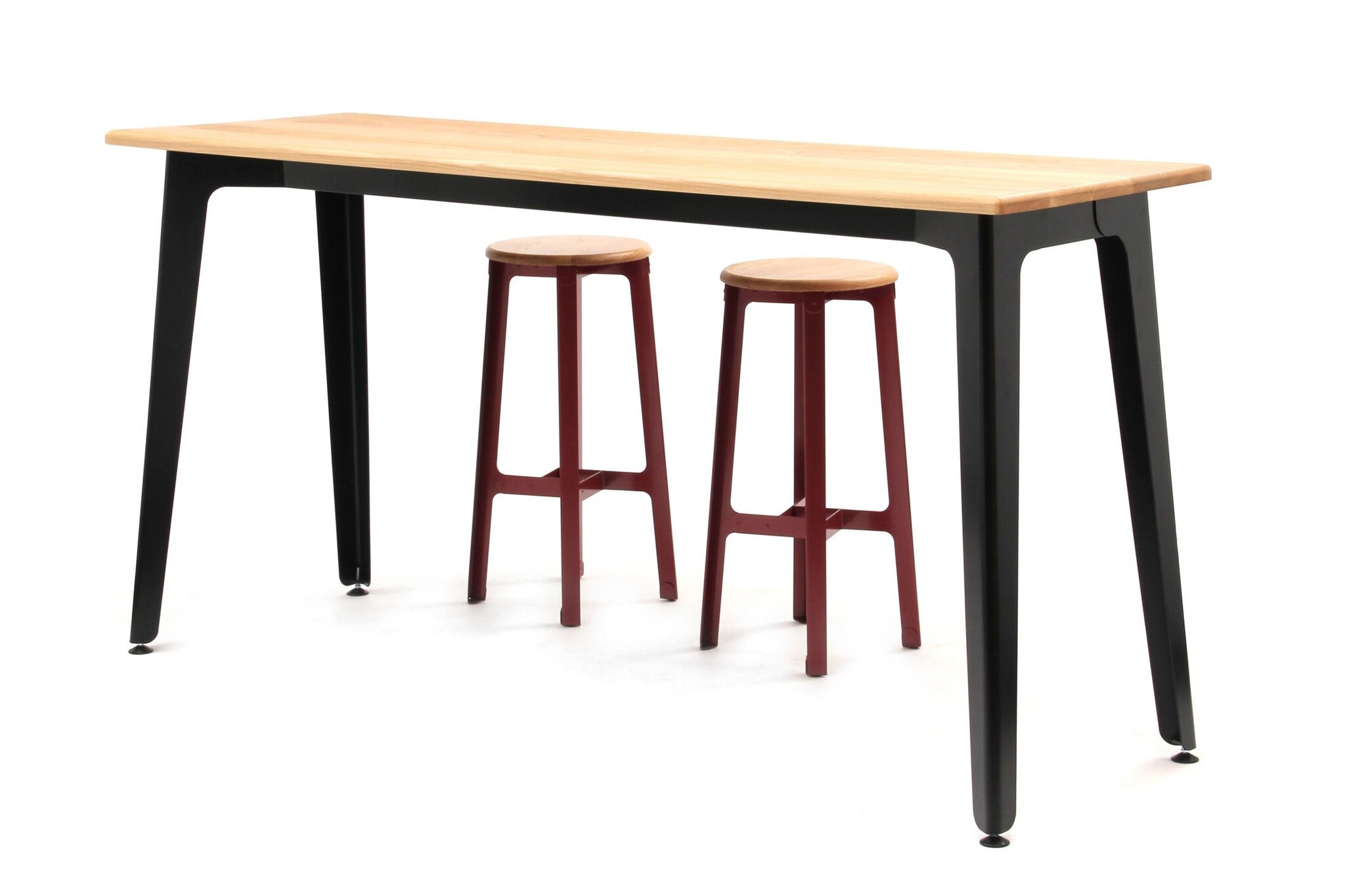 Het stalen frame wordt zorgvuldig geproportioneerd en afgewerkt. Het frame heeft een oppervlak van slijtvast polyester poedercoating en er is keuze in het tafelblad om zo de eigen unieke kenmerken af te laten stemmen met de behoefte.