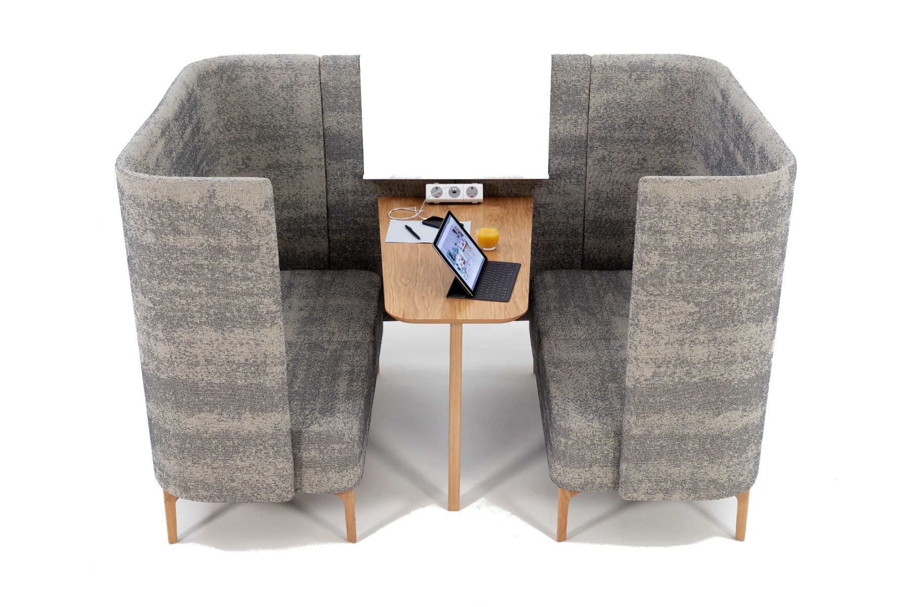 De Naughtone Pullman Booth is een akoestische werkruimte om samen te werken met meerdere personen zonder anderen tot overlast te zijn. Ideaal als ruimte in een kantoor te plaatsen. Kenmerken van de Naughtone Pullman Booth