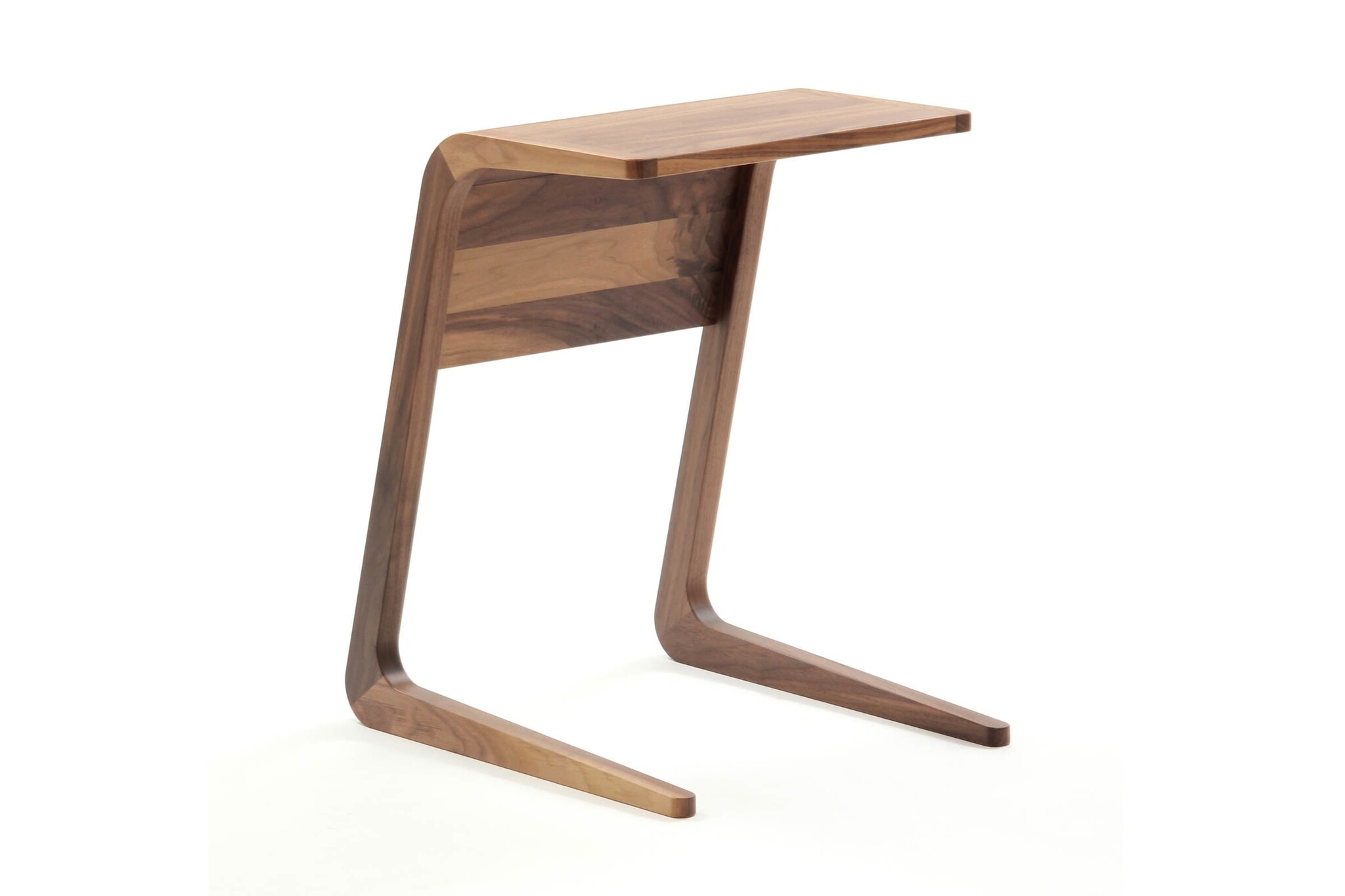 De laptoptafel is gemaakt van massief hardhout en multiplex met fineeroppervlak en voorzien van een lichte matte lak.