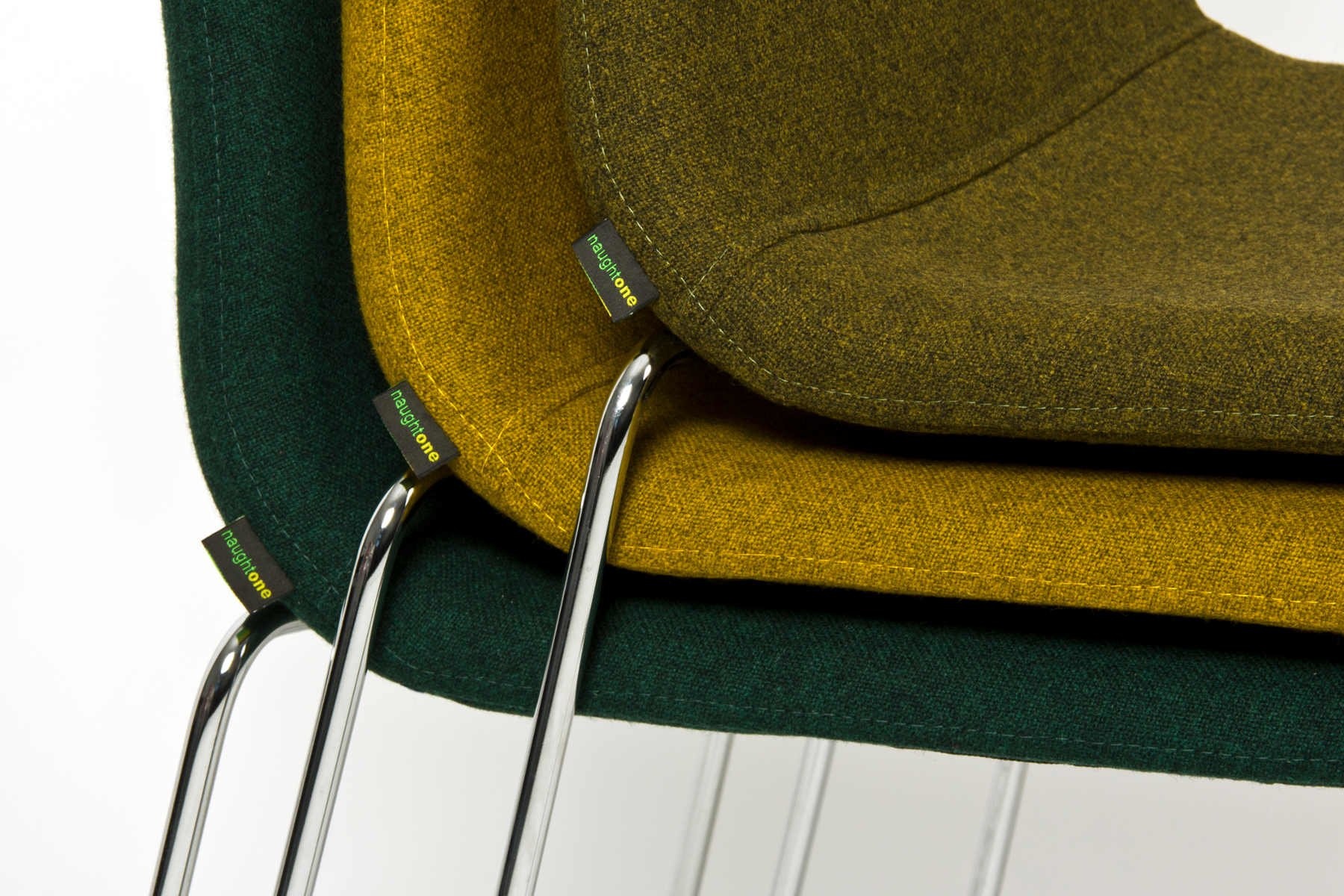 De Naughtone Always stoelen zijn te stofferen in diverse stof- en leersoorten.