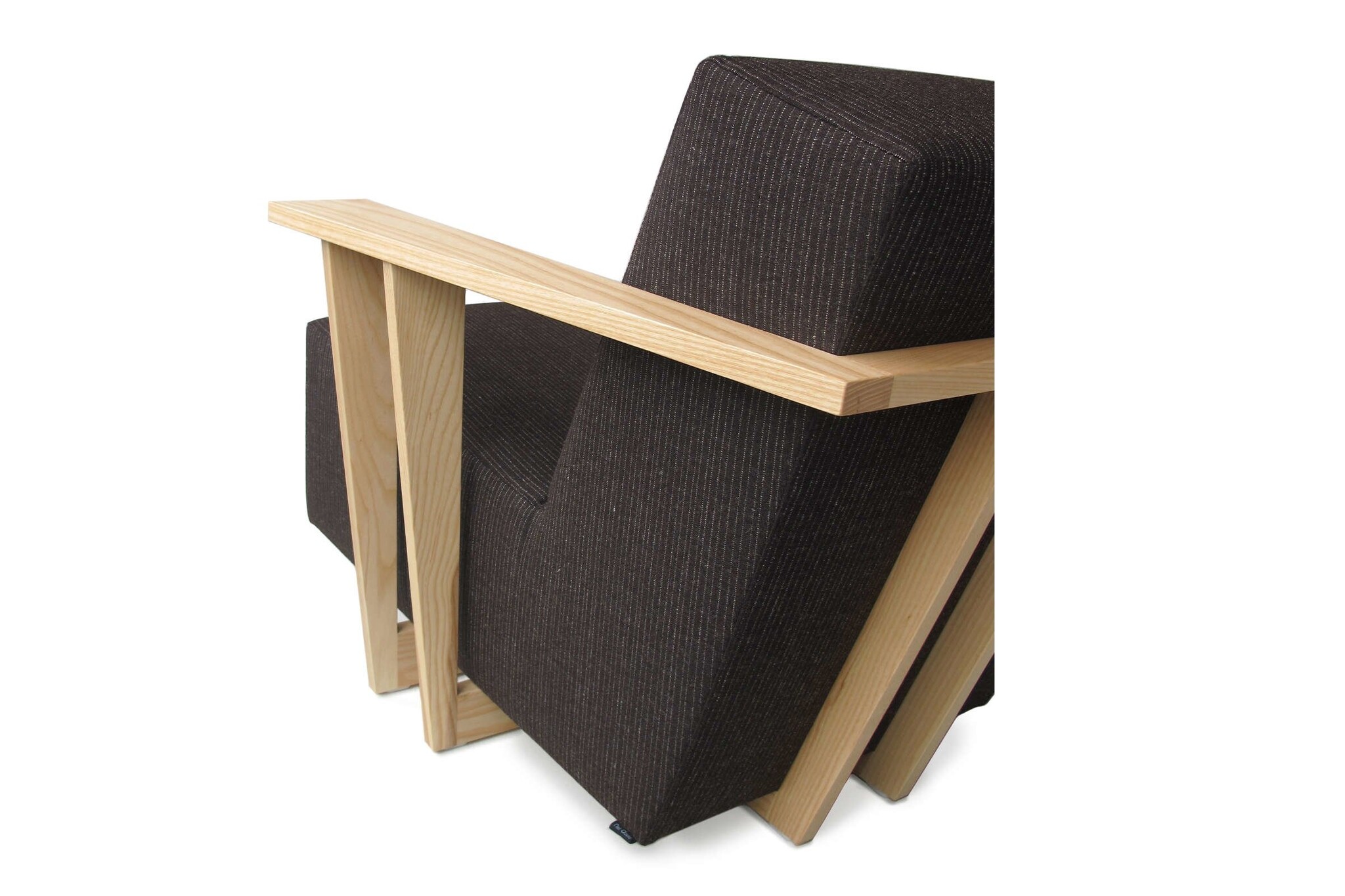 Het frame van de F2 fauteuil van Neil David is gemaakt van massief essenhout en kan afgewerkt worden met mat blanke lak, een zijde glans lak of beits. De rug en zitting zijn gestoffeerd uit één hoes en kan worden geleverd in een rekbare stof in verschillende kleuren. Deze strak vormgegeven loungefauteuil past mooi in een entree, lobby of wachtkamer. Samen met de bijzettafelserie van Neil David, de BT2, BT3 en BT4 geeft dit samen een speels effect.Afmetingen van de Neil David F2 fauteuil