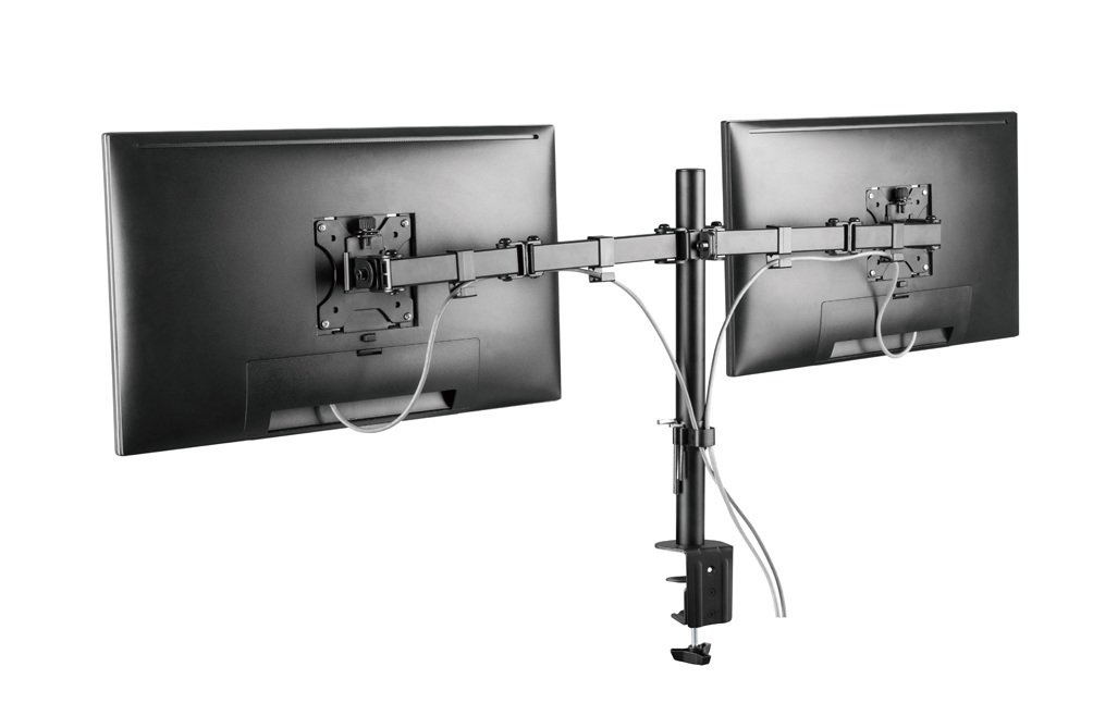 Beschikbaar voor 2 beeldschermen van 254 tot 812,8 mm. Alleen in het zwart is deze monitorarm verkrijgbaar. Het maximale gewicht wat deze monitorarm kan dragen is 16 kilo in totaal (8 kilo per beeldscherm).