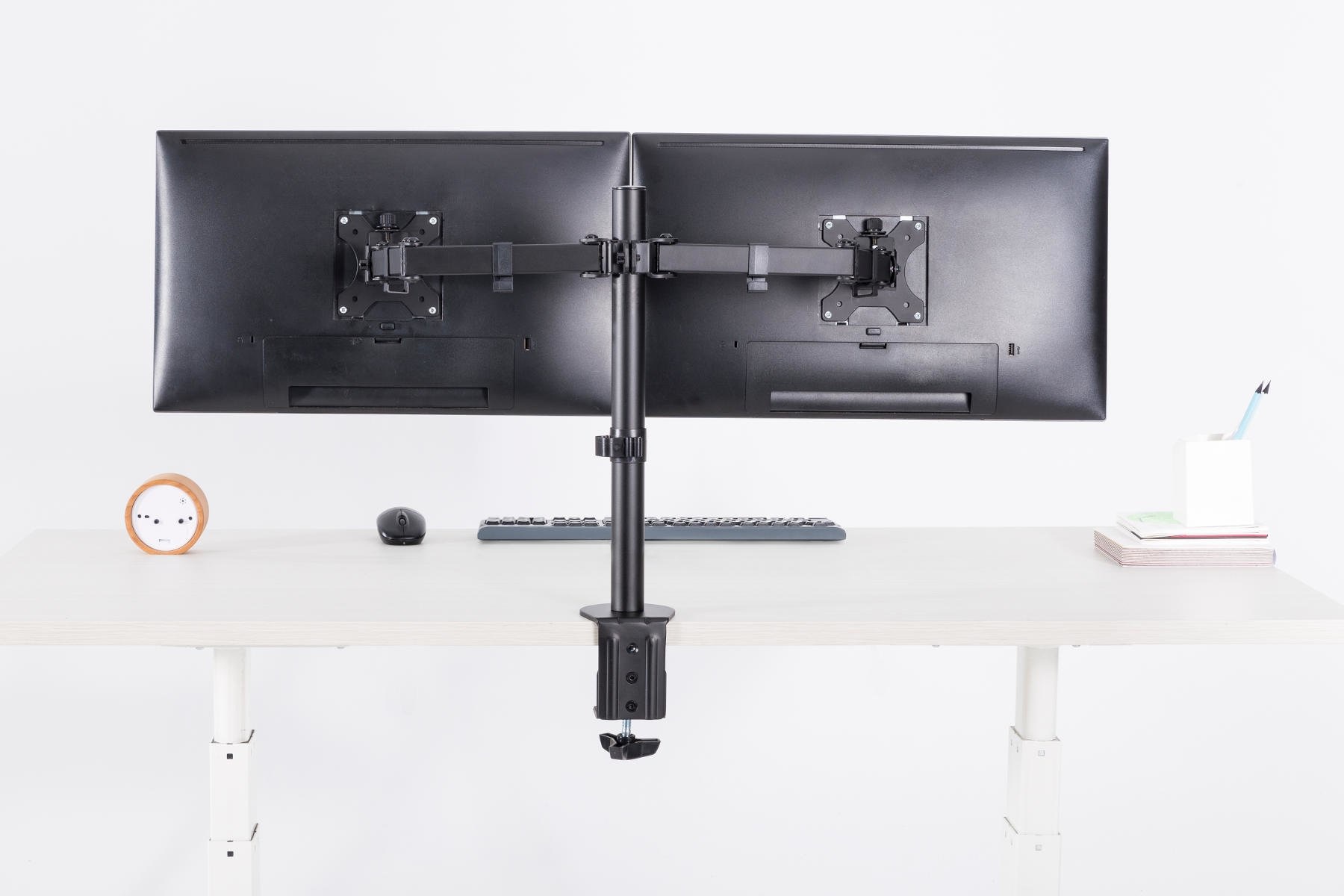 Wanneer u met 2 beeldschermen werkt is een monitorarm ideaal om te gebruiken. U kunt namelijk twee beeldschermen koppelen aan deze monitorarm. De monitorarm zelf kunt u bevestigen door middel van een bureauklem of een bureaudoorvoer te plaatsen. Niet alleen zorgt deze beeldschermarm voor een opgeruimder bureau, maar ook voor een betere werkhouding. Door de Neomounts by Newstar FPMA-D550DBLACK monitorarm op de juiste ooghoogte in te stellen voorkomt u latere schouder- en rugklachten. Verder vinden werknemers het gebruik van een monitorarm voor meerdere beeldschermen vooruitstrevender werken en relaxter, ook worden fouten sneller herkend en makkelijker opgelost.