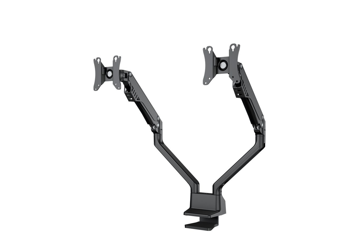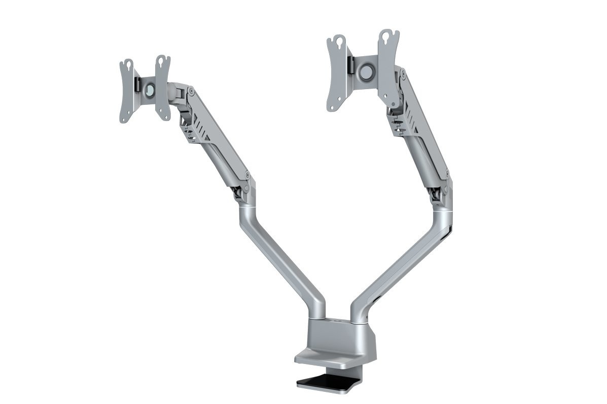 De beeldschermarmen zijn leverbaar in het wit, zilver en zwart. Het maximale gewicht is 9 kilo per scherm, dus maximale gewicht 18 kilo in totaal. Het VESA-monteersysteem is 75 x 75 mm – 100 x 100 mm. Bureaumontage kan via een bureauklem of bureaudoorvoer worden gedaan. U heeft recht op 5 jaar garantie