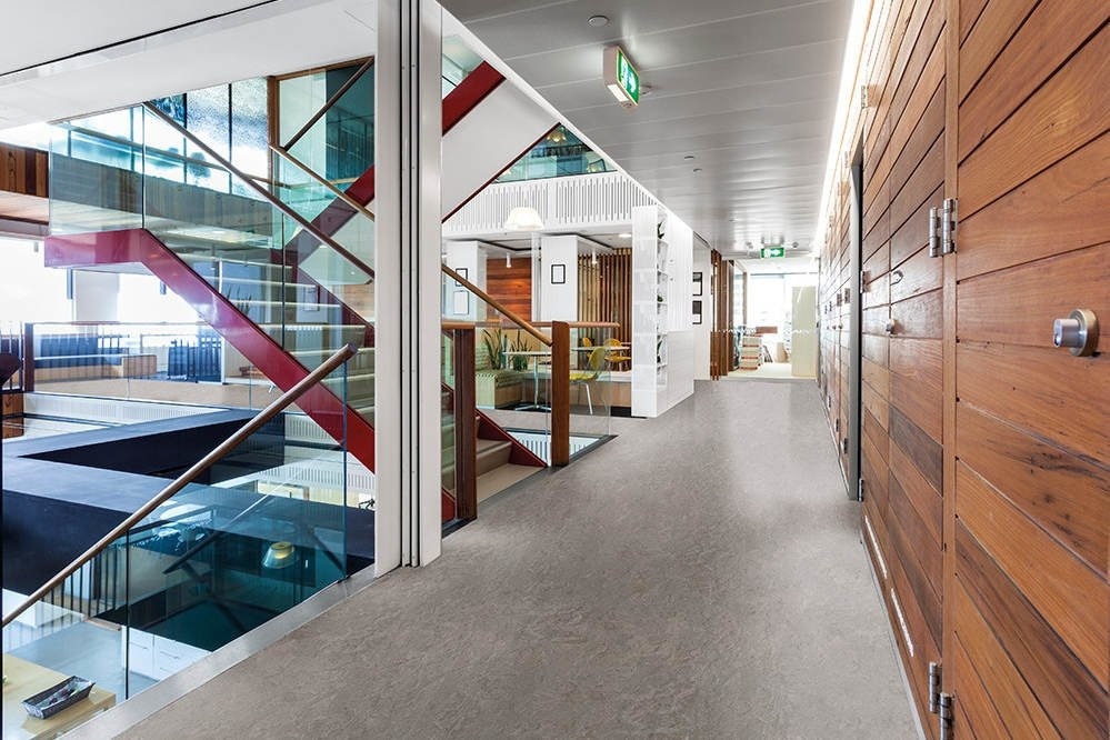 Veilige vloer, door haar brandwerende werking en hoge antislip factor.