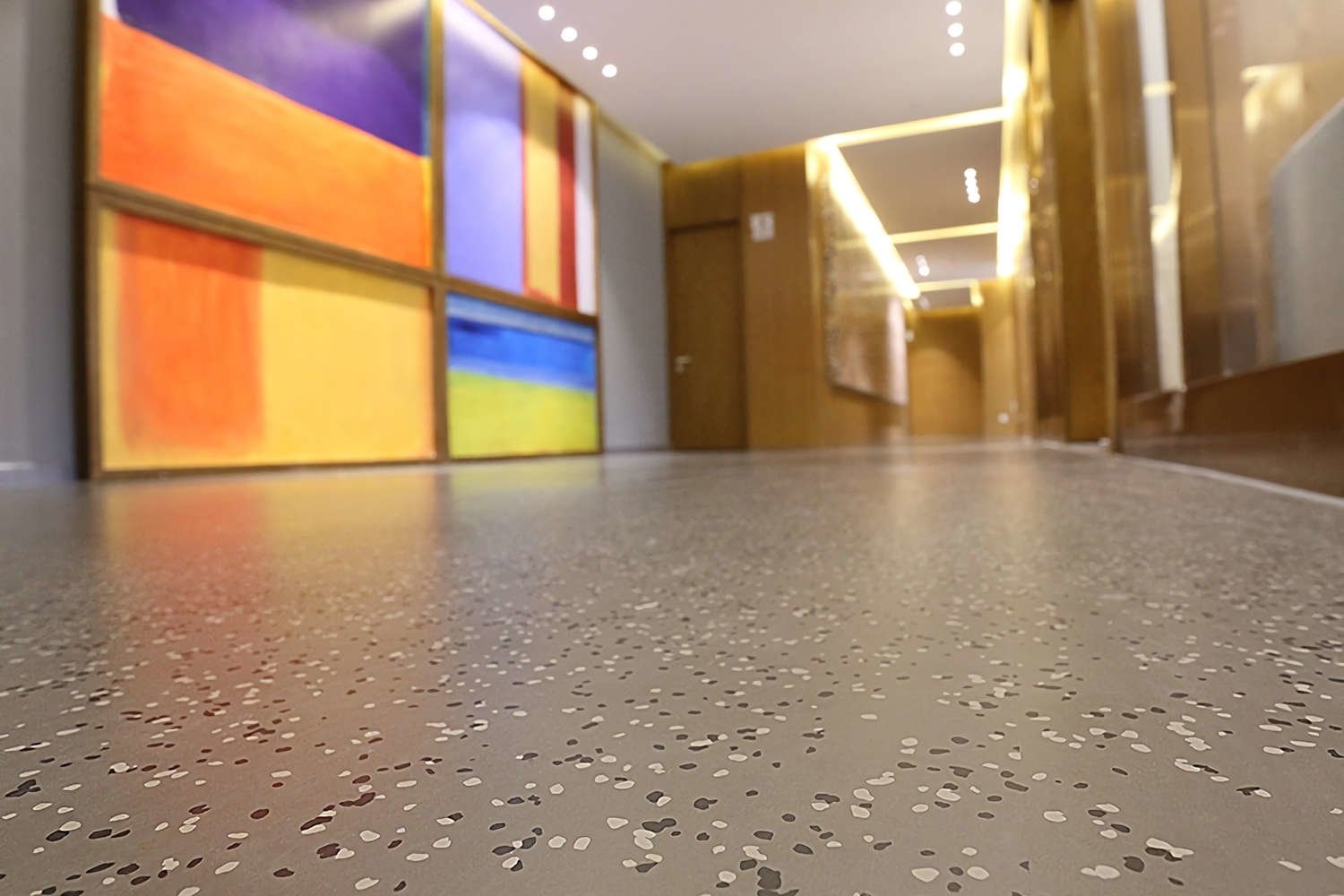 De Noraplan® Eco heeft een glad oppervlak en is uitgevoerd in 16 rustige basiskleuren met verwerking van op kleur afgestemde vlokken voor een modern accent.