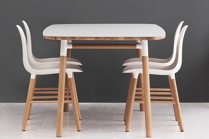 De Normann Copenhagen Form Table is een langwerpige of vierkante houten kantinetafel. Verkrijgbaar in verschillende kleuren en 2 maten past deze tafel in het bedrijfsrestaurant, kantine of in uw eigen keuken als eettafel. Van dezelfde ontwerper, Simon Legald, zijn ook de bijpassende Form Chair kantinestoelen. Met een vochtige doek zijn de tafels makkelijk schoon te houden. Afmetingen vierkante en rechthoekige tafelsDe vierkante Form Table is 74,4 cm hoog en het tafelblad is 120 bij 120 cm. De rechthoekige tafel is 74,4 cm hoog, 190 cm lang en 95 cm breed.