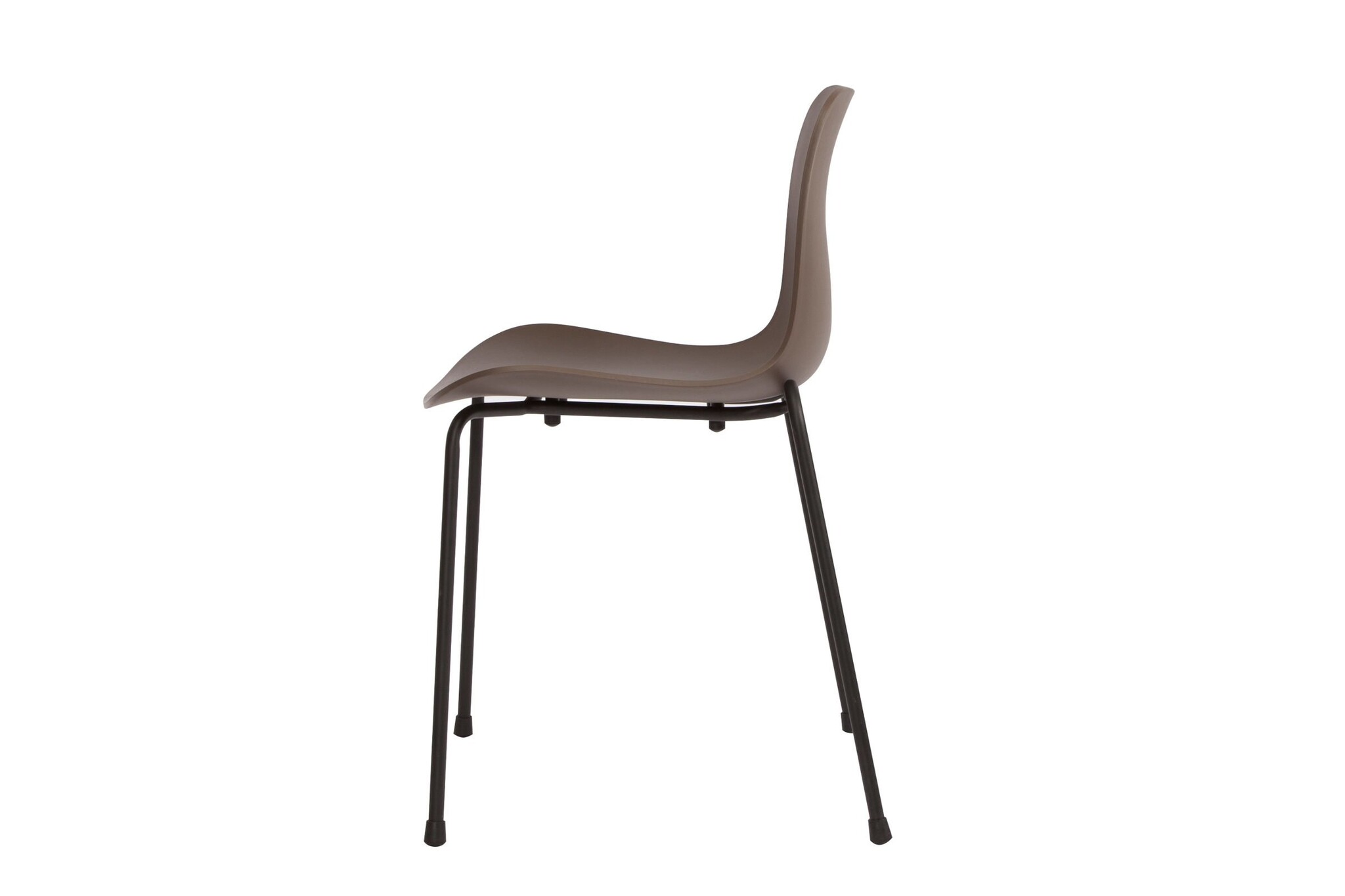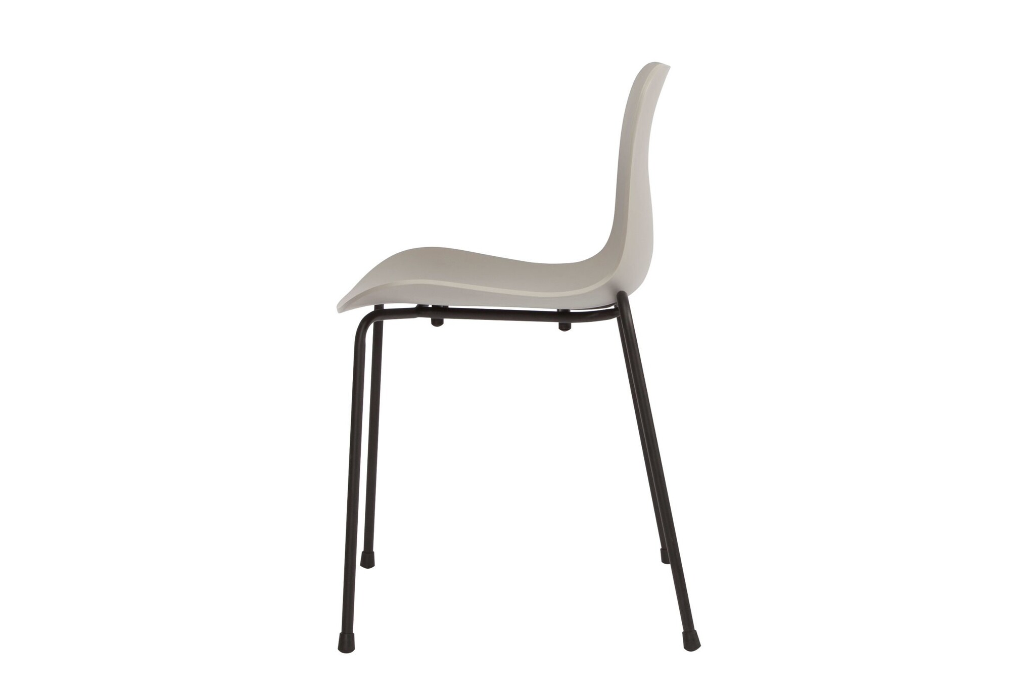 De NORR11 Langue Stacked Chair heeft een kunststof schaal in de kleuren: Off White, Flint Grey, Gargoyle Brown, Moss Green en Antraciet. Het metalen onderstel is in zwart.