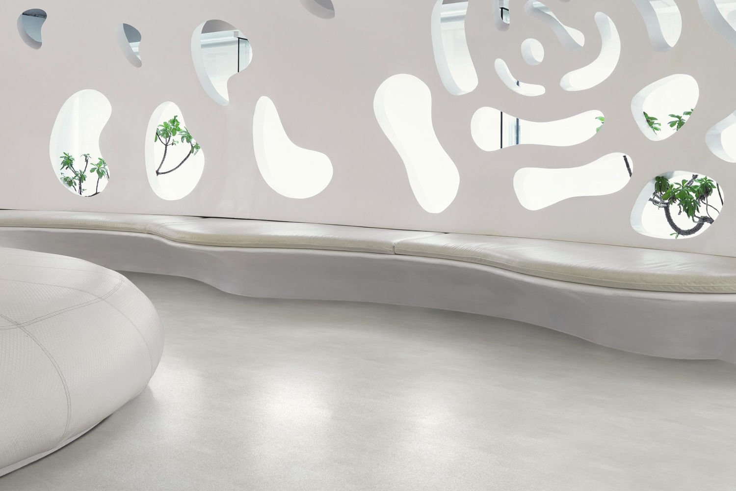 De Expona Flow Stone is een van de designs uit de Expona vloercollectie van Objectflors. De serie weerspiegelt een kopie van een industriële betonnen vloer. De toplagen zijn bewerkt met scheuren en fijne adertjes voor een authentiek uiterlijk.De indicatieprijs is per m².