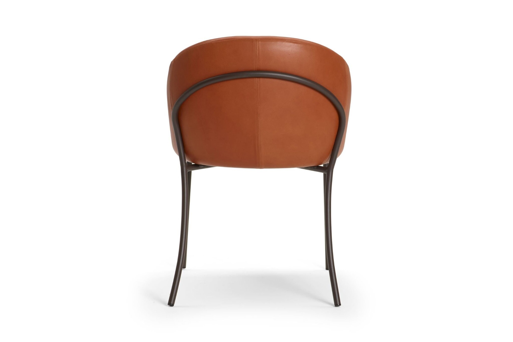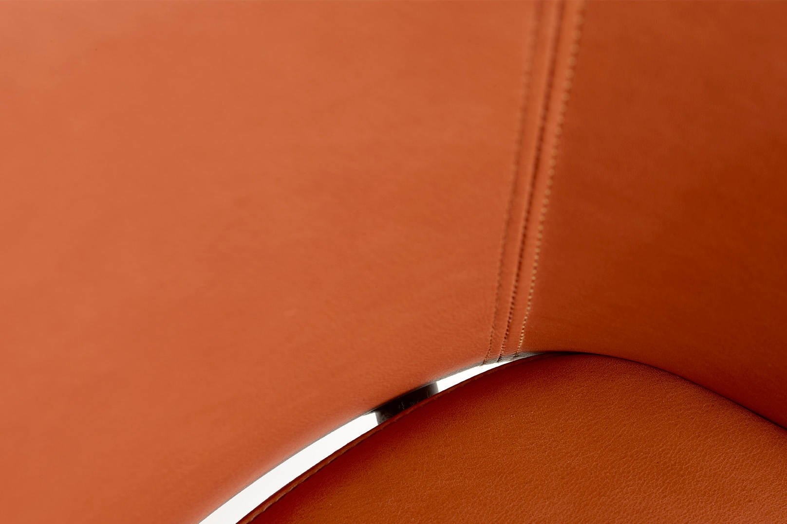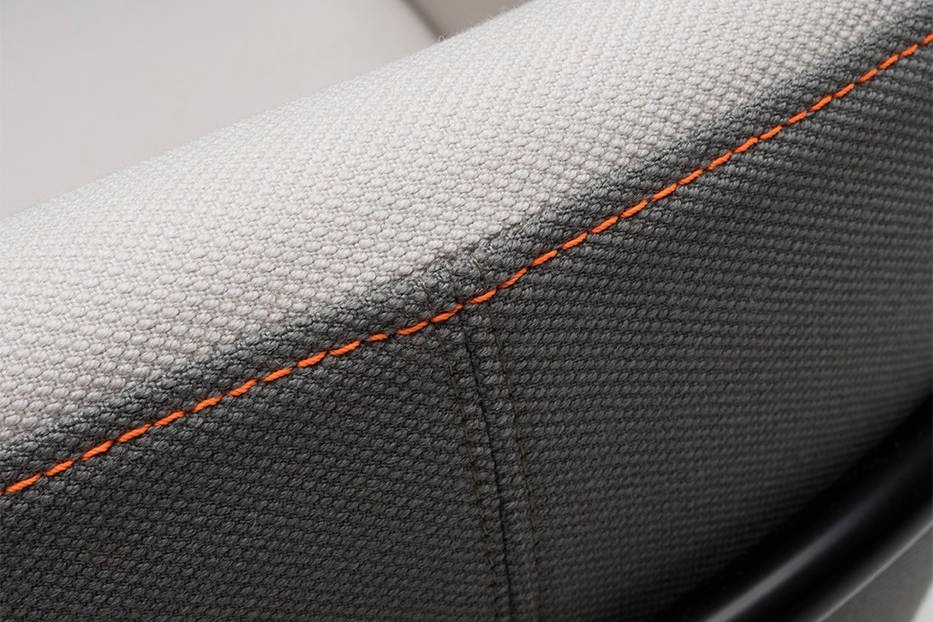 De stoel heeft armleuningen met een duidelijke stiknaad.