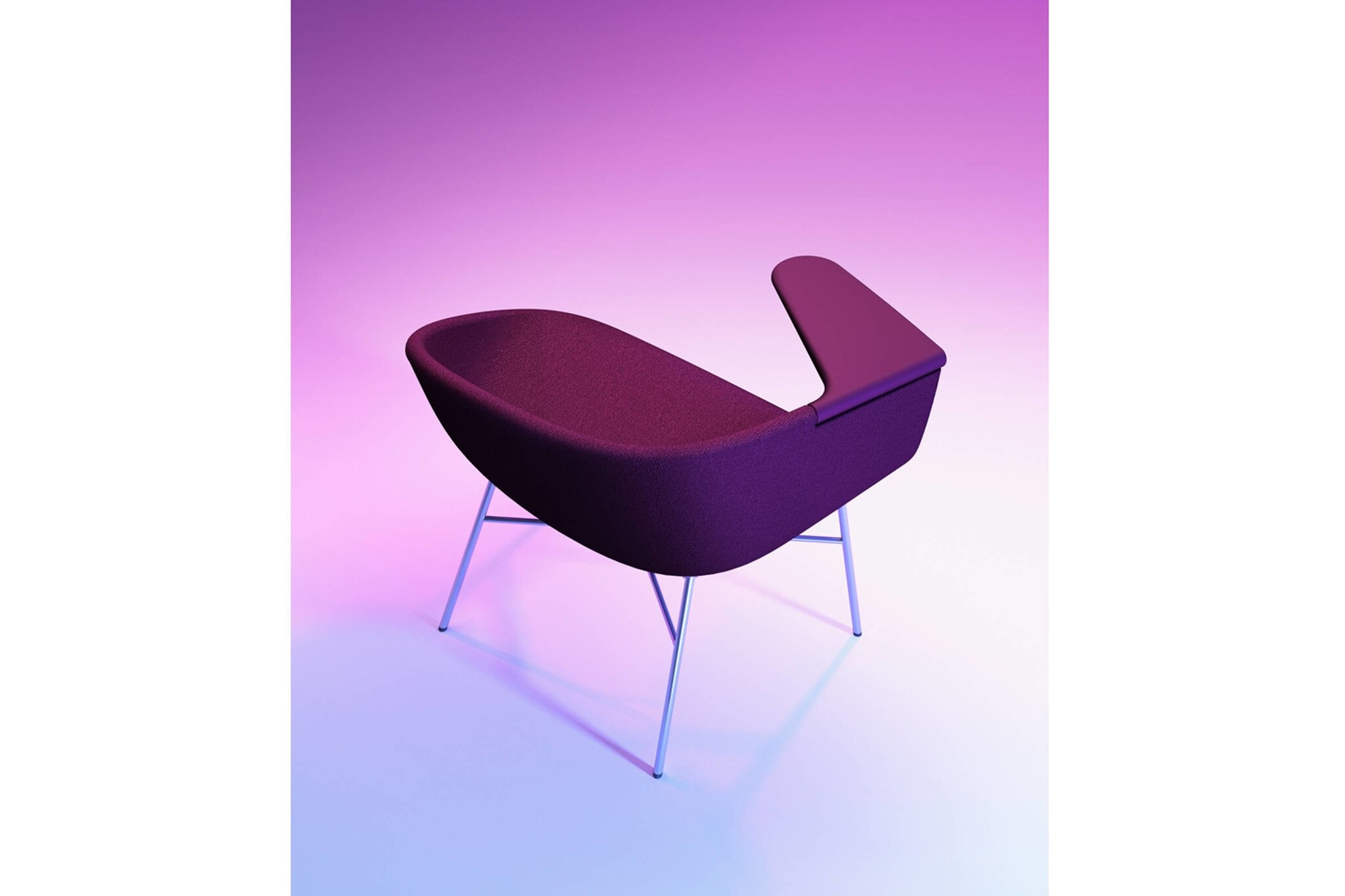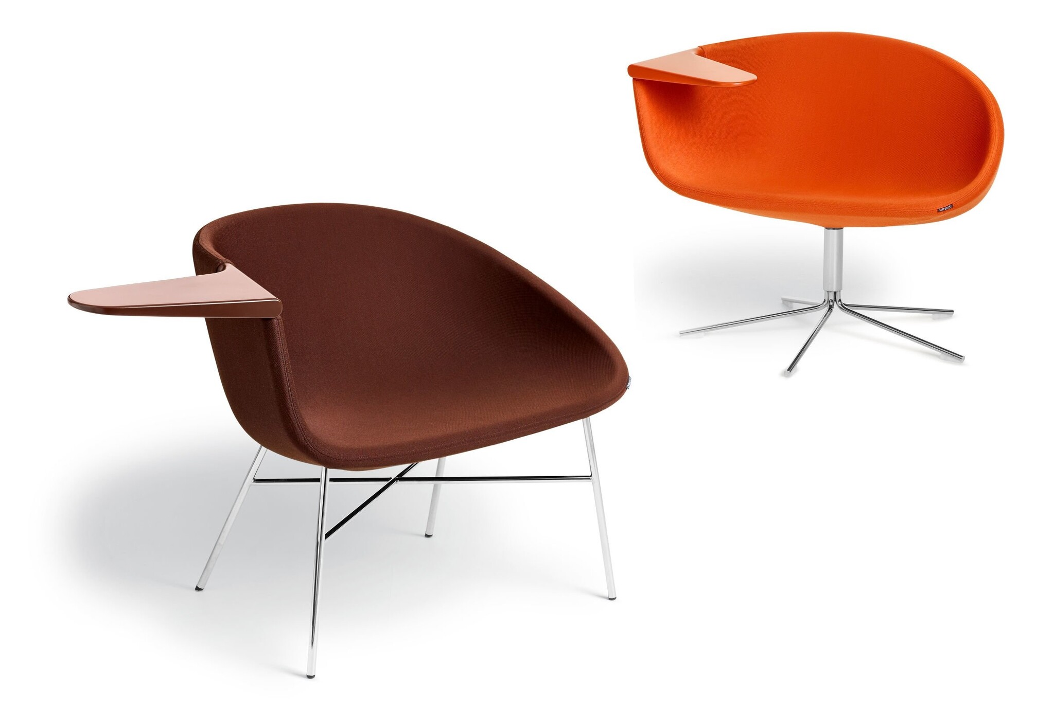De Moment van Offecct is een sierlijke en strakke fauteuil. Het schrijfblad is in meerdere standen te verkrijgen. Fauteuil is verkrijgbaar in meerdere kleuren.