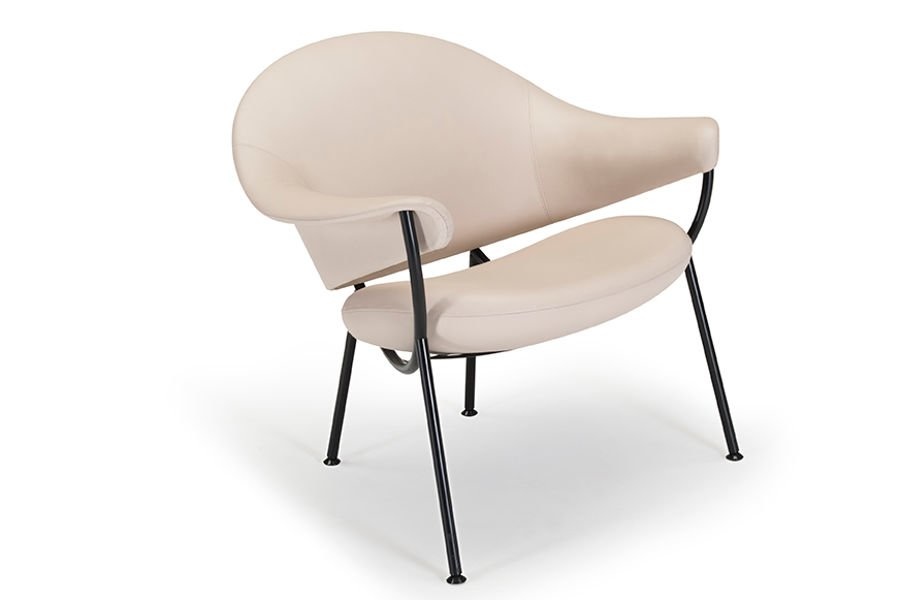 De stoel is te stofferen in stof of leer, standaard in Elmo Soft.
