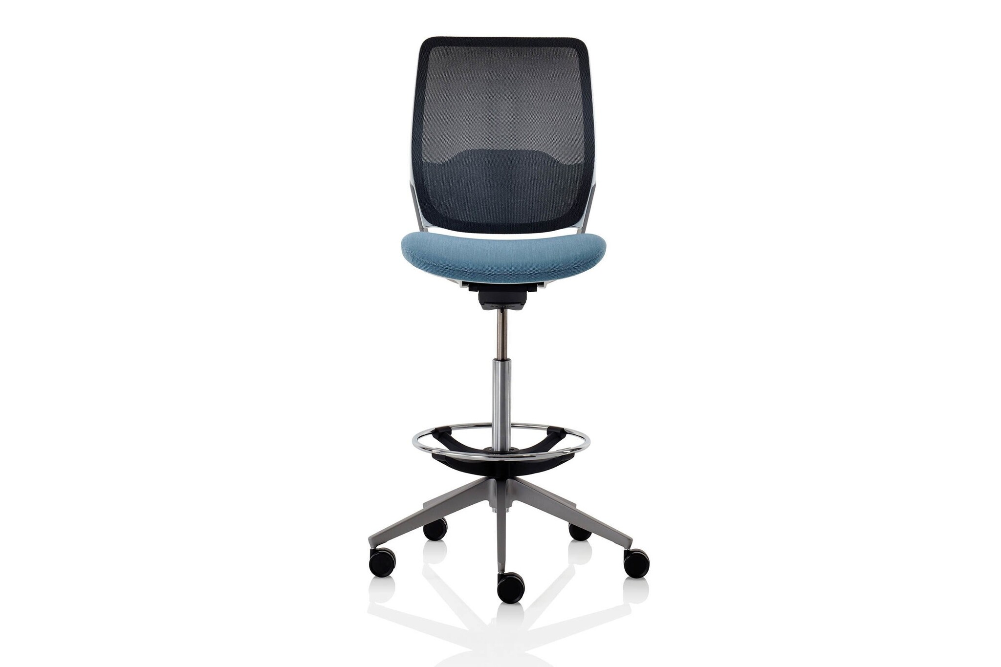 Hoge werkstoel is voorzien van een voetenring