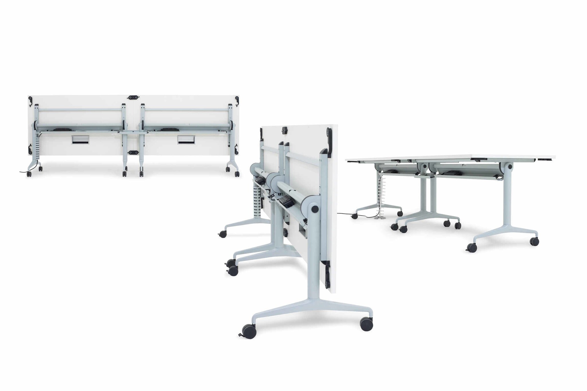 Stroom en data kunnen naadloos worden geïntegreerd in de Obvio tafels en de meest complexe technologische vereisten zijn te configureren met 'plug-in & play'-eenvoud. Hierdoor is het eenvoudig om uw elektrische apparaten op te laden tijdens de vergadering of college. Dankzij de kabelgoten en geïntegreerde kabelslurf heeft u ook geen last van stroomdraden. Deze zijn mooi weggewerkt.