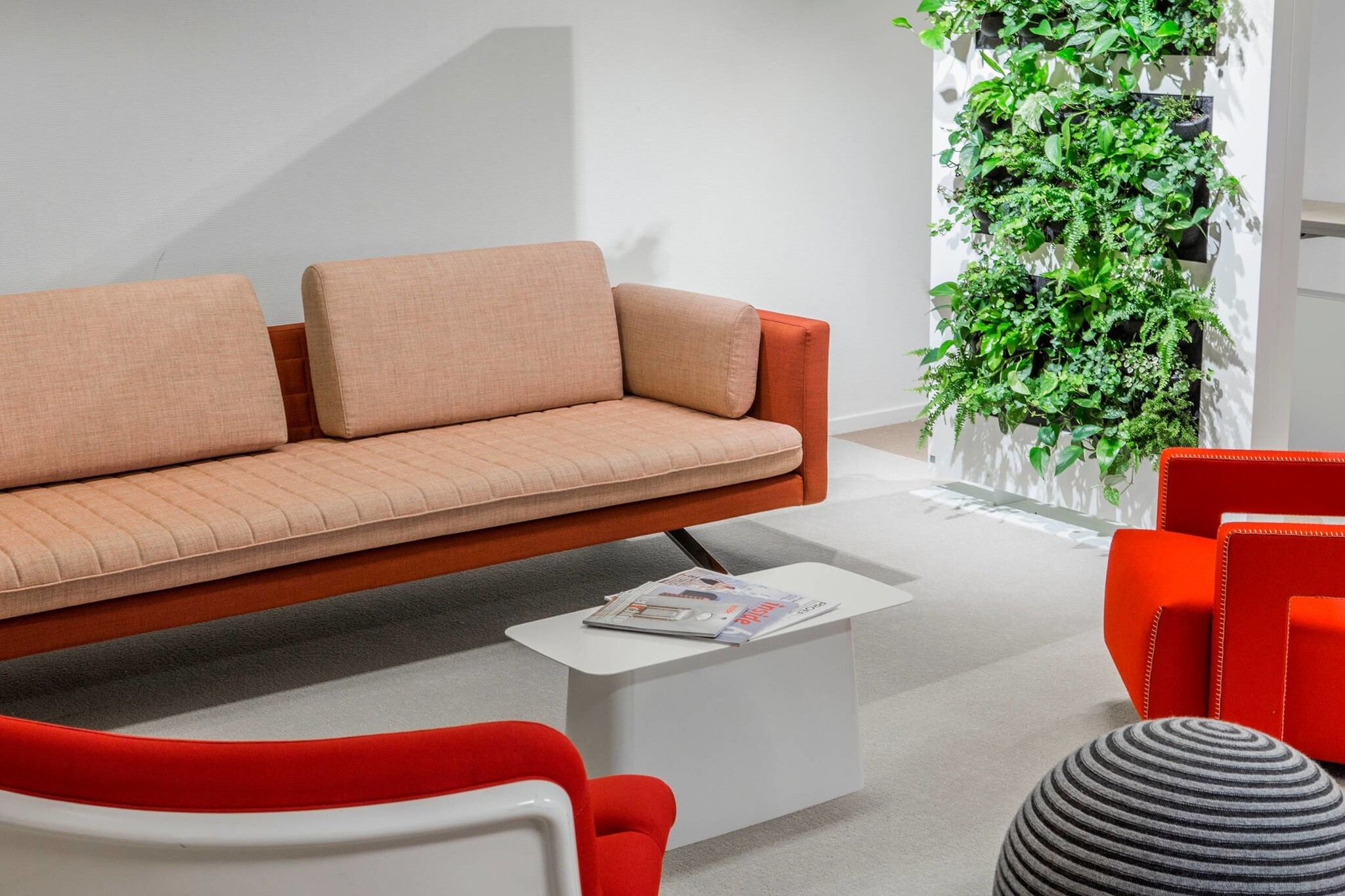 De Kylian serie van Palau, die ontworpen is door Edward van Vliet, bestaat uit een bank, fauteuil en een poefje | krukje. Stoffering en materialen van de Palau Kylian bank