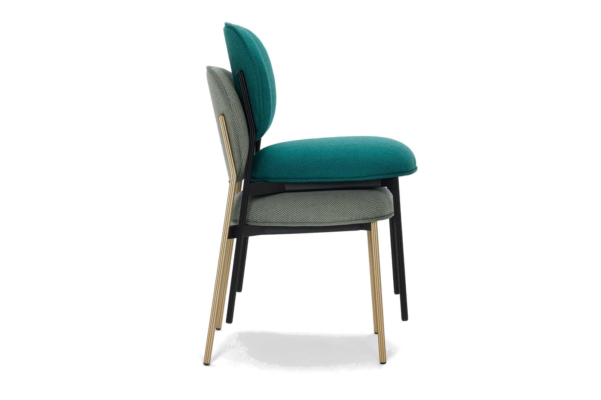 Deze stapelbare stoel is te stofferen in de stofsoorten van Kvadrat (Relate, Jaali en Velvett Still). Het aluminium frame geeft een mooi accent. De rug van de Pedrali Blume stoel is netjes afgewerkt met oog voor detail.