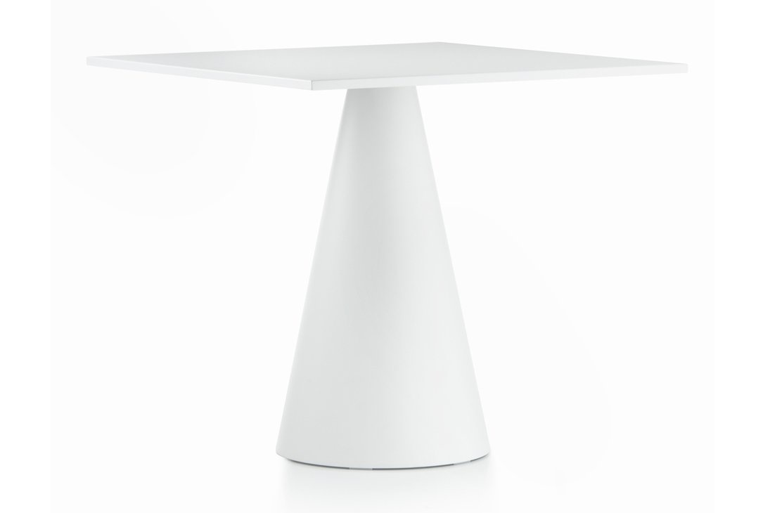 De Pedrali Ikon 867 tafel is geschikt voor gebruik binnen en buiten. De met polypropyleen geïnjecteerde tafelpoot is te combineren met een tafelblad van massief laminaat of gepoedercoat staal en is verkrijgbaar in de kleuren wit, zwart, licht grijs en beige.