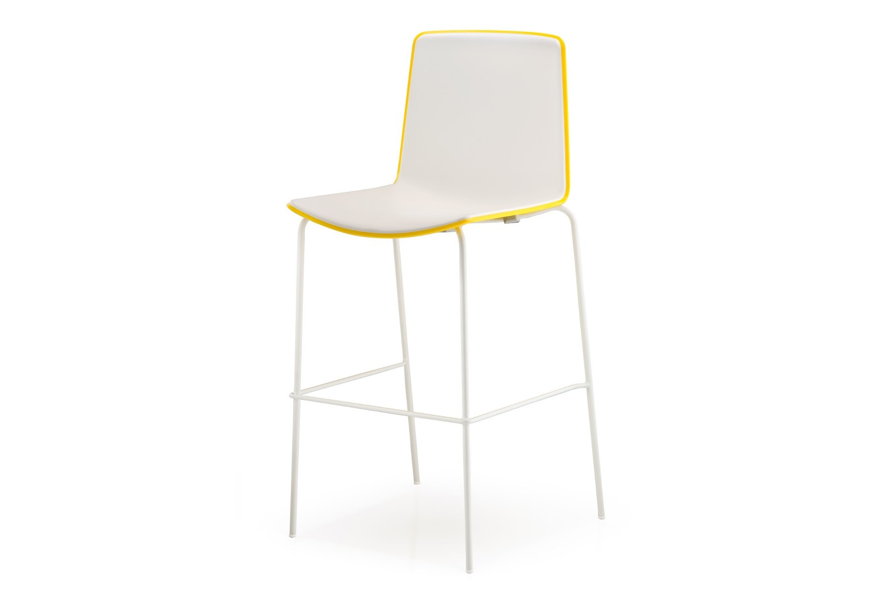 De Tweet barkruk op 4 poten heeft een polypropyleenschaal en stalen buizenframe met een ø van 14 mm. De afwerking van de zitschaal is mat en krasvast. Het frame is verchroomd, zwart verchroomd of gepoedercoat. De zithoogte is 65 cm en de Pedrali Tweet 892 barkrukken zijn tot maximaal 6 stuks te stapelen.