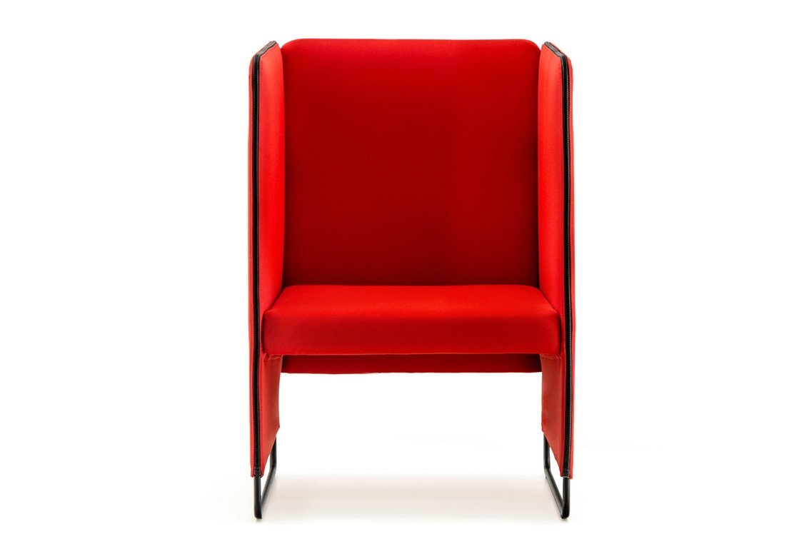 De Pedrali Zippo ZIP1P/140 is een hoge geluiddempende fauteuil met een hoge rug van maar liefst 140 cm. De hoogte van de rug en de structuur van de zij- en achterkant zorgen voor een goede geluidsisolatie. Een telefoongesprek kan hier ongestoord plaatsvinden. Door 2 stoelen tegenover elkaar te plaatsen is een mini-vergadering of bilateraal met zorg voor privacy te voeren in elke kantoorruimte. De stoel is gemaakt van brandvertragend polyurethaanschuim. Langs de rand loopt een rits. De stoel kan worden bedekt met stof of simili-leer. Frame van stalen buizen met een Ø van 16 mm in wit, zwart of aluminium gepoedercoat en passend met de kleur van de rits kleur. De zithoogte is 44 cm.