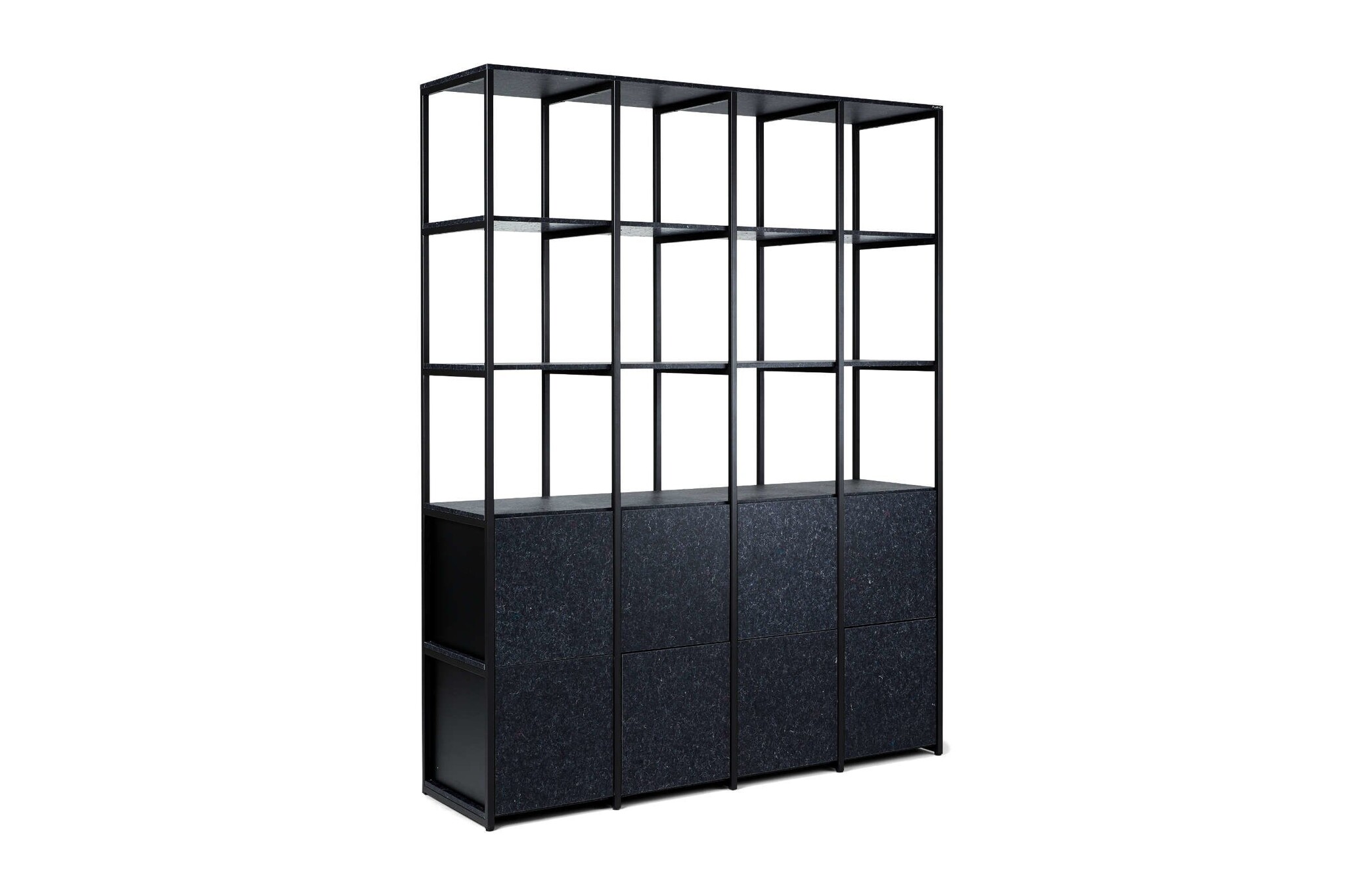 Zo heeft deze kast 2 functies in 1: opbergen, ruimte verdelen en akoestiek verbeteren.
