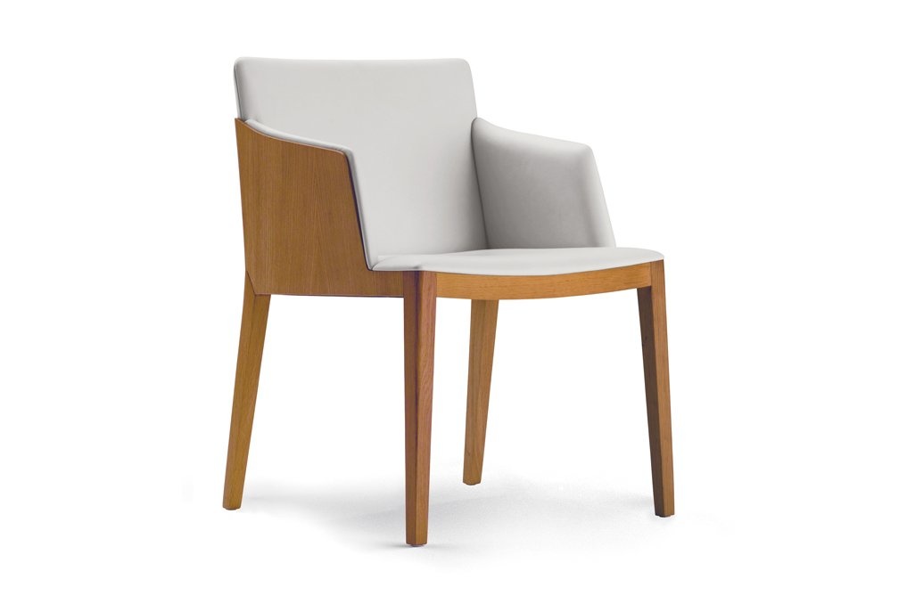 De Beatrice van Poltrona Frau is een elegante stoel en ontworpen door Monica Förster. Evenwicht en harmonie staan bij het ontwerp centraal. De afwisseling tussen leer en hout creëert grafische effecten, in het bijzonder de rugleuning. Deze heeft een gebogen houten paneel, die mooi overloopt vanuit de achterste poten. Het frame is volledig gemaakt van massief eiken, met het achterpaneel in gebogen multiplex beuken en eiken fineer. De Poltrona Frau Beatrice is tevens beschikbaar met een gesloten armleuning. De stoel is beschikbaar met bekleding uit de Pelle Frau® of Heritage leercollectie. Beatrice is uitermate geschikt in allerlei horeca instellingen, zoals het (bedrijfs)restaurant, kantine, bistro of café.