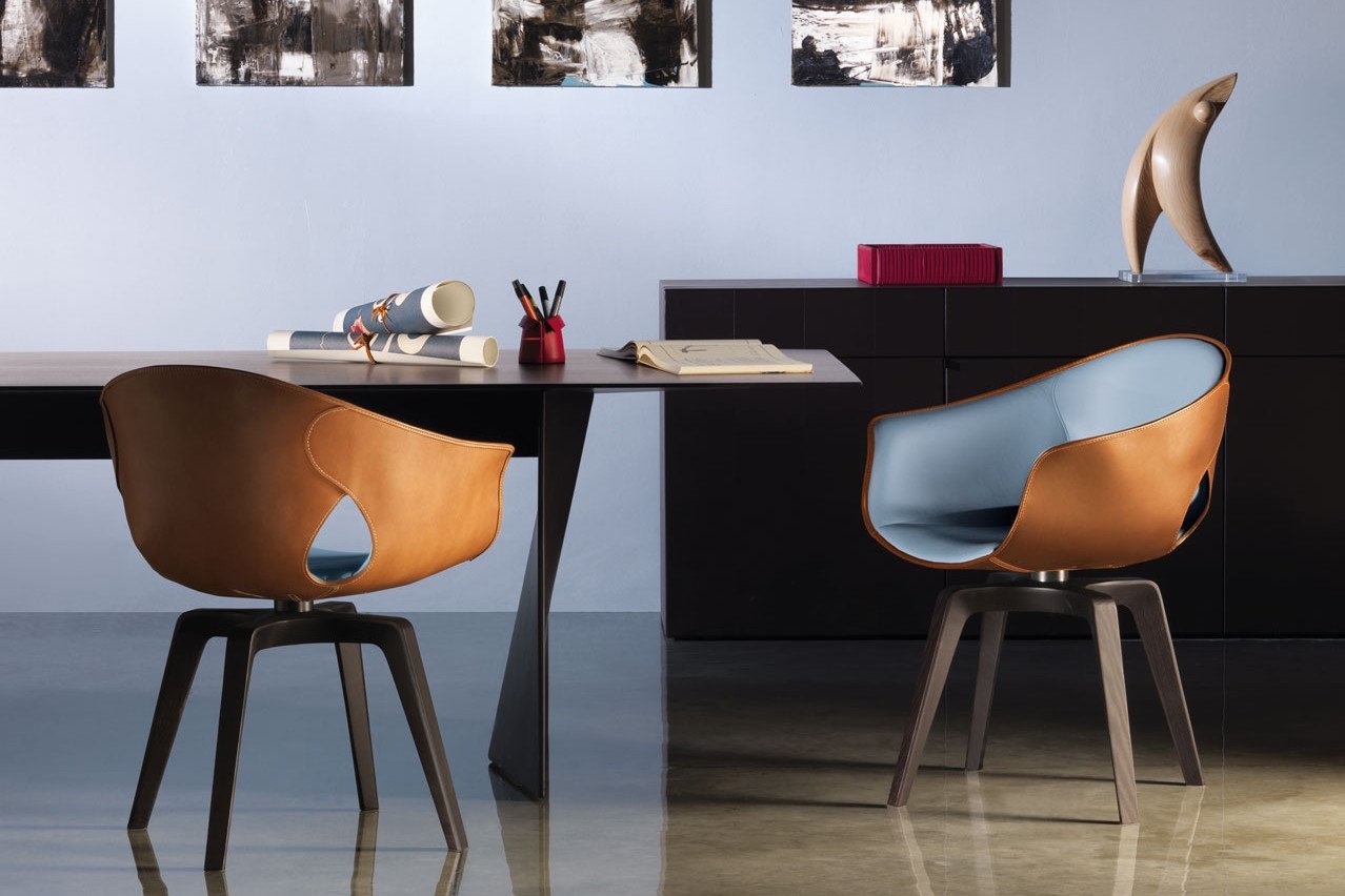 De Ginger en Ginger Ale van Poltrona Frau zijn verfijnde en eenvoudige gemakkelijke stoelen.