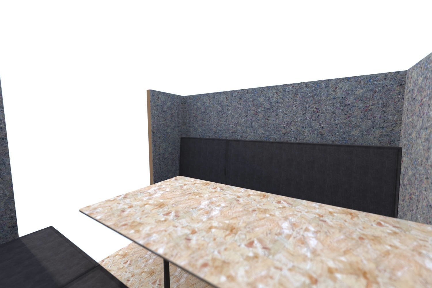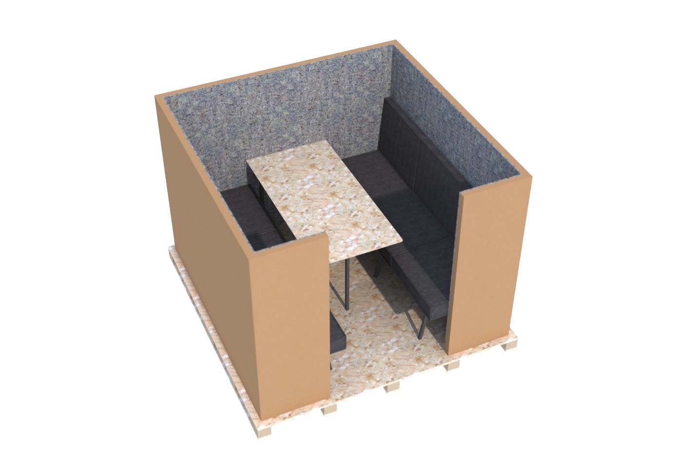 Hoewel dit model akoestisch minder effectief is dan de modellen met plafond, biedt het toch een prettige privéruimte binnen de omringende kantoortuin, omdat de wanden visuele afleiding beperken en het geluid prettig dempen.