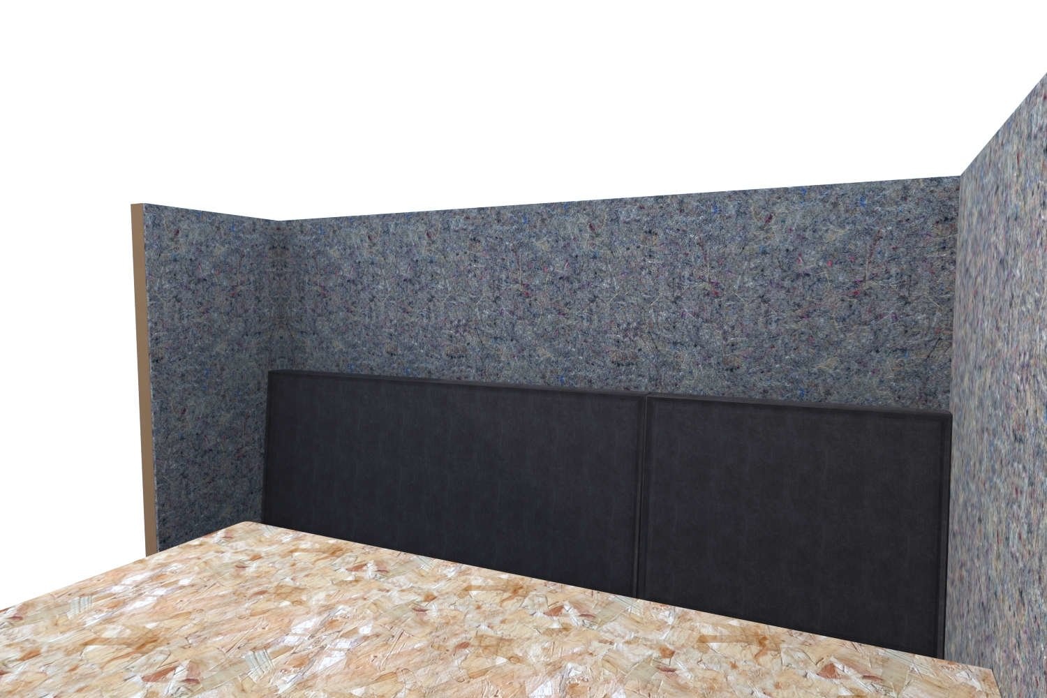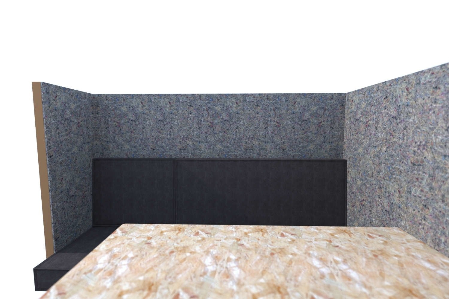 Dit model heeft net als de andere modellen wanden van dik honingraatkarton, die aan de binnenzijde geheel bekleed zijn met akoestisch vilt.