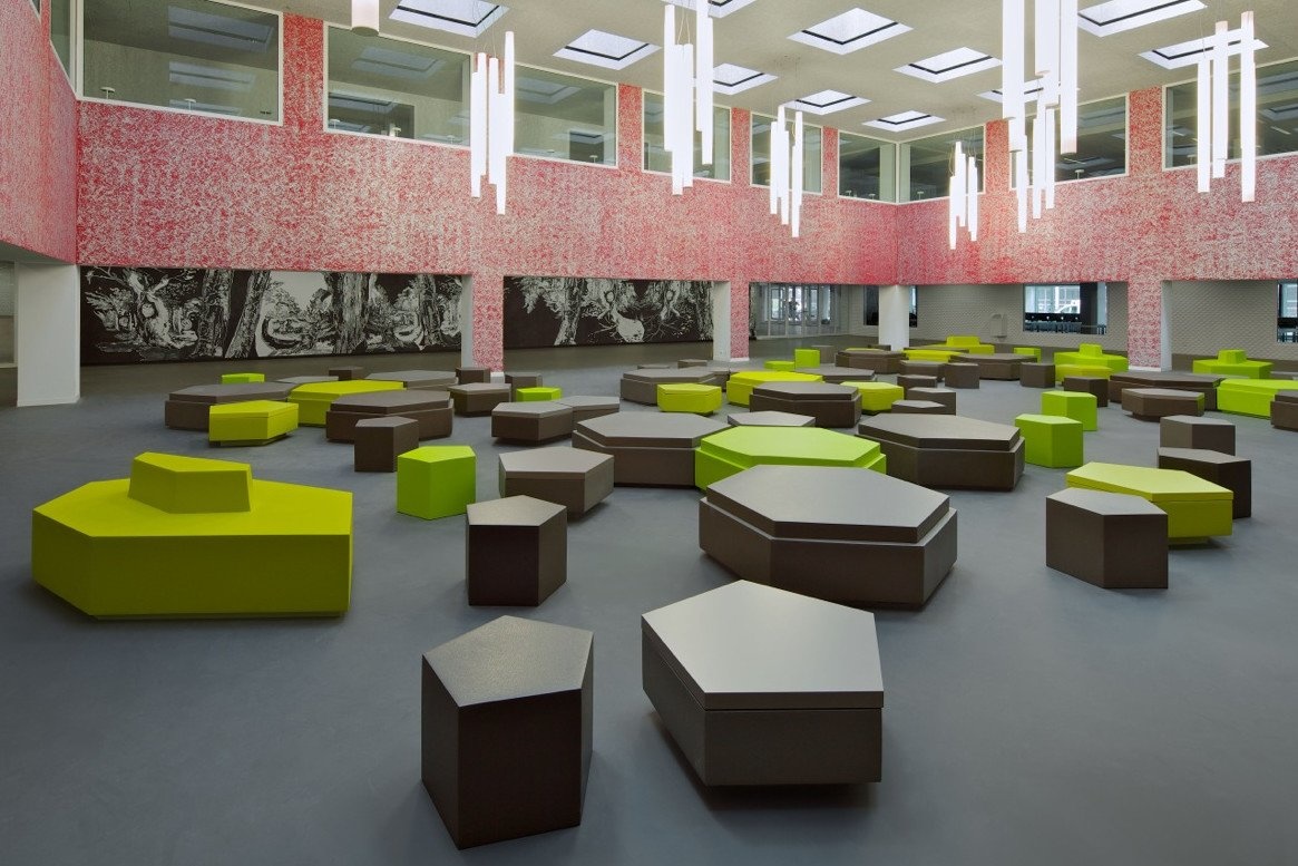 Een bank en poef in diverse maatvoeringen en kleuren. Pentagon is tevens geschikt voor buitengebruik. Dankzij de diversiteit van dit meubel, is de Pentagon in alle soorten interieur en omgevingen toe te passen.
