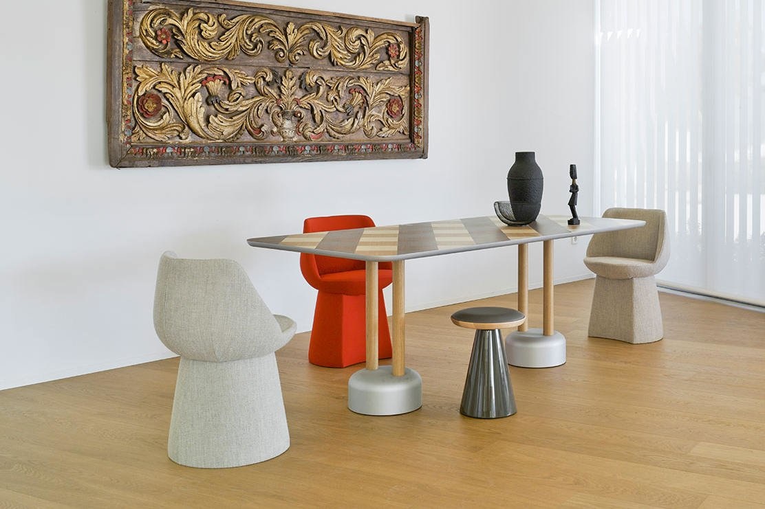 Houten poten: eiken met F1 epoxy gecoat F1 staal interieurs gekleurd volgens de kleurenkaart.