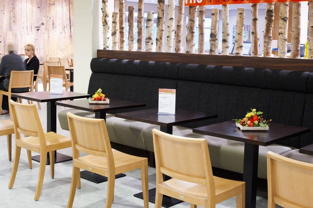 Een kantinebank volledig gestoffeerd en leverbaar in diverse kleuren en uitvoeringen. 51981 B bank heeft een voetsteun in de kleur antraciet, deze is gemaakt uit gelamineerd spaanplaat. De bank is bol gestoffeerd met een verticale stiknaad op de rugleuning. Verder is het mogelijk de 51981 B met hoofdsteun te verkrijgen.Satelliet 51981 modelcodes: