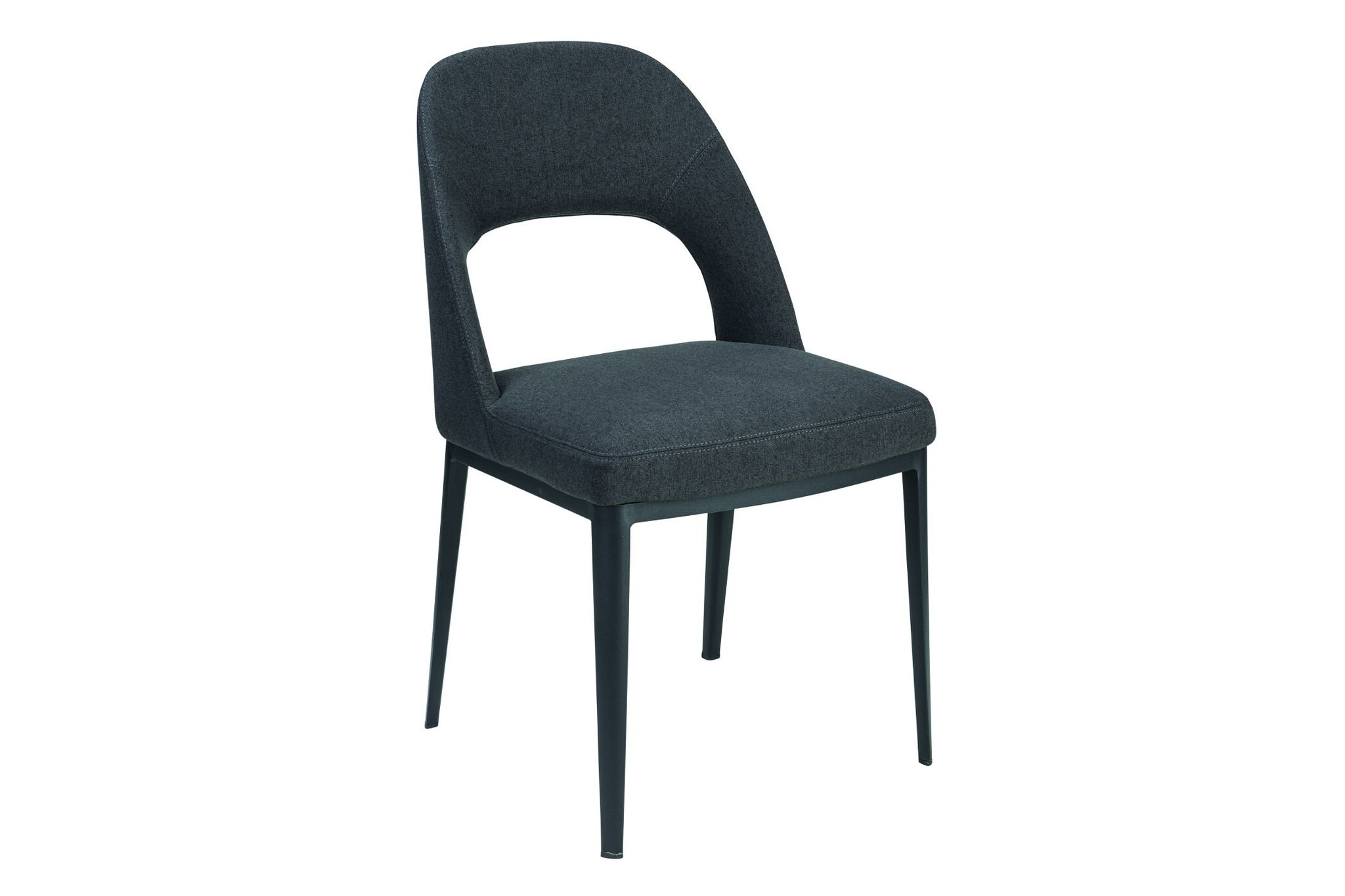De stoel heeft een metalen frame, mat zwart gecoat.
