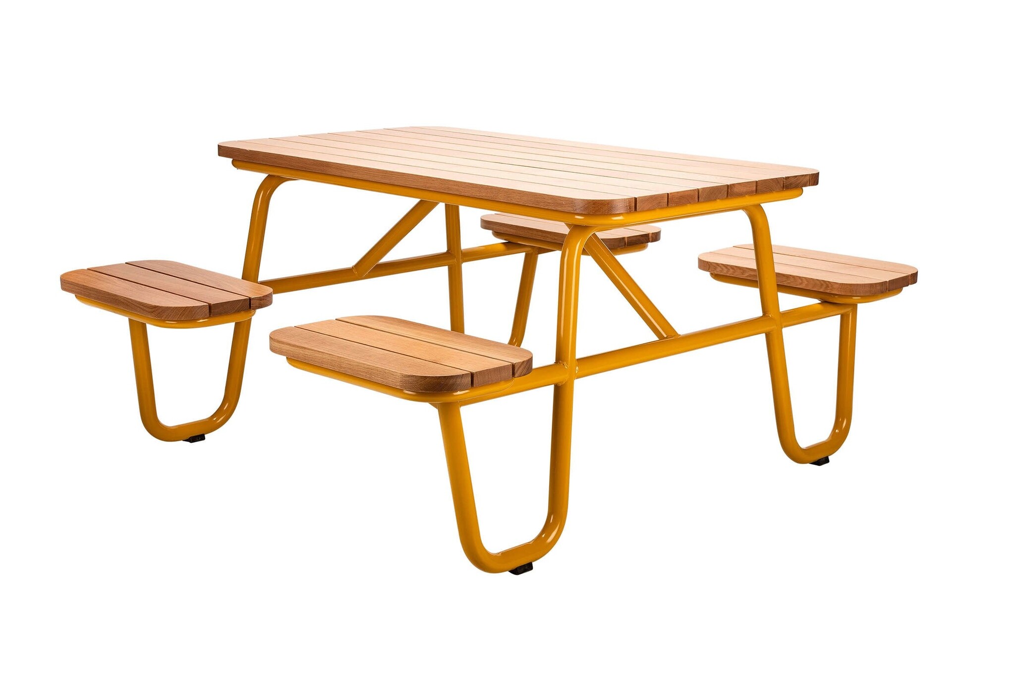 De Satelliet Dentro heeft 2 uitvoeringen: Satelliet Dentro 8P (de 8-persoons picknicktafel) en de Satelliet Dentro 4P (de 4-persoons picknicktafel).