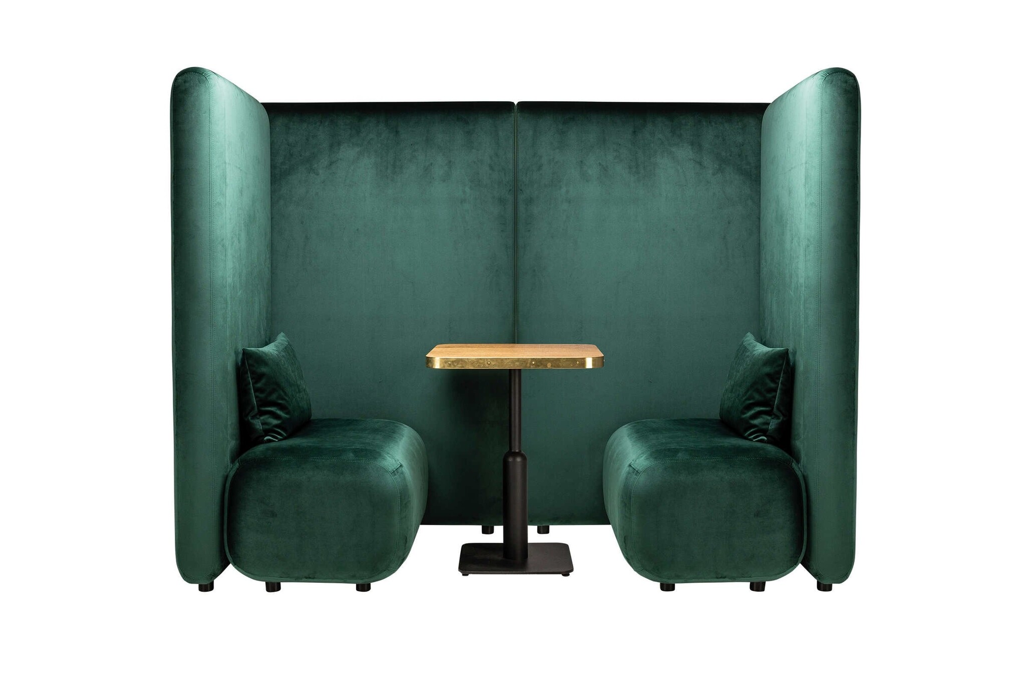 De banken zijn omringd met panelen zodat er een privé plek aanwezig is op de desbetreffende ruimte.