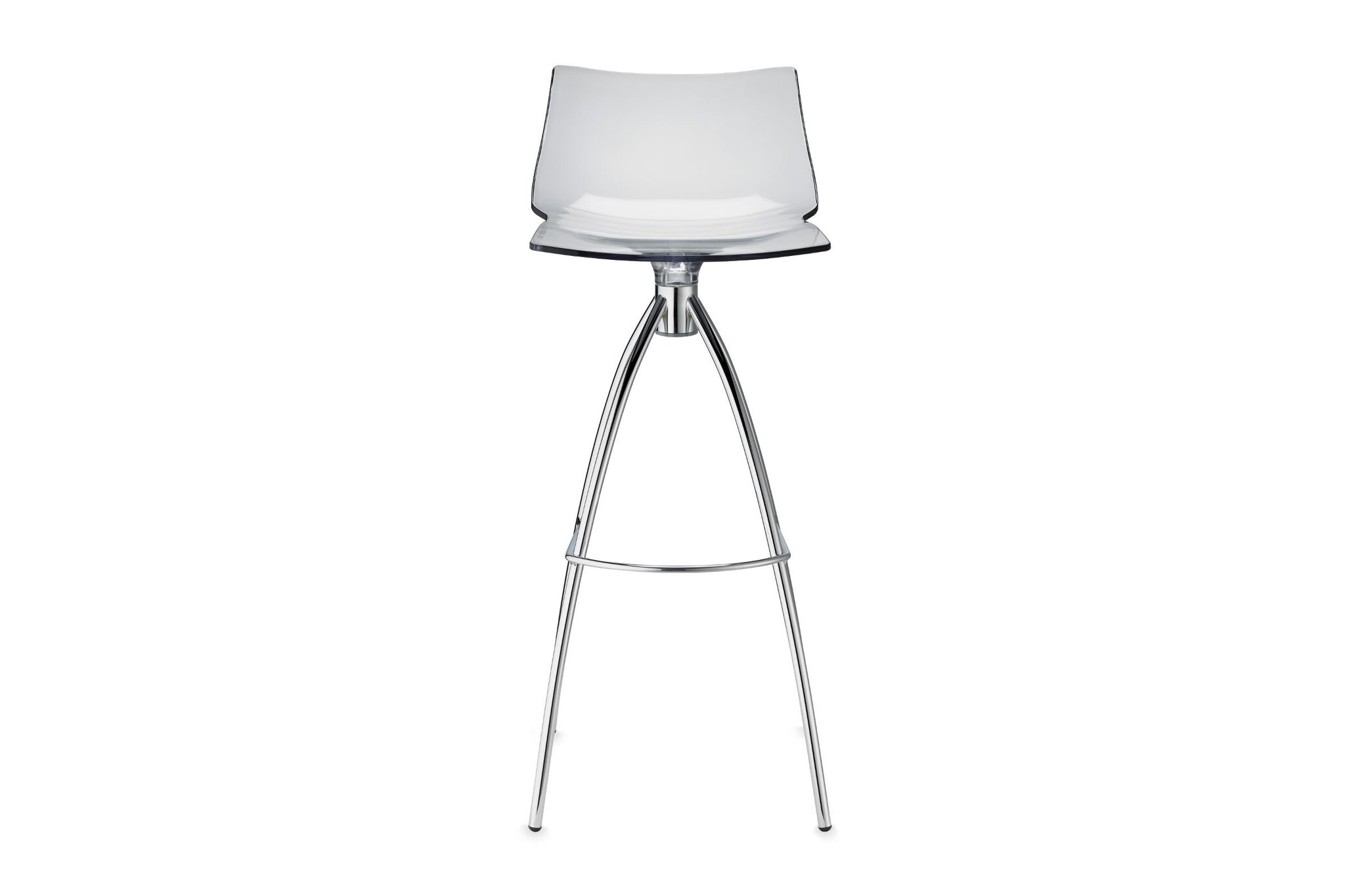 Day Light 80 is een hoge kruk op een vast verchroomd 4-pootsframe frame met voetensteun. De kuip is gemaakt van polycarbonaat.