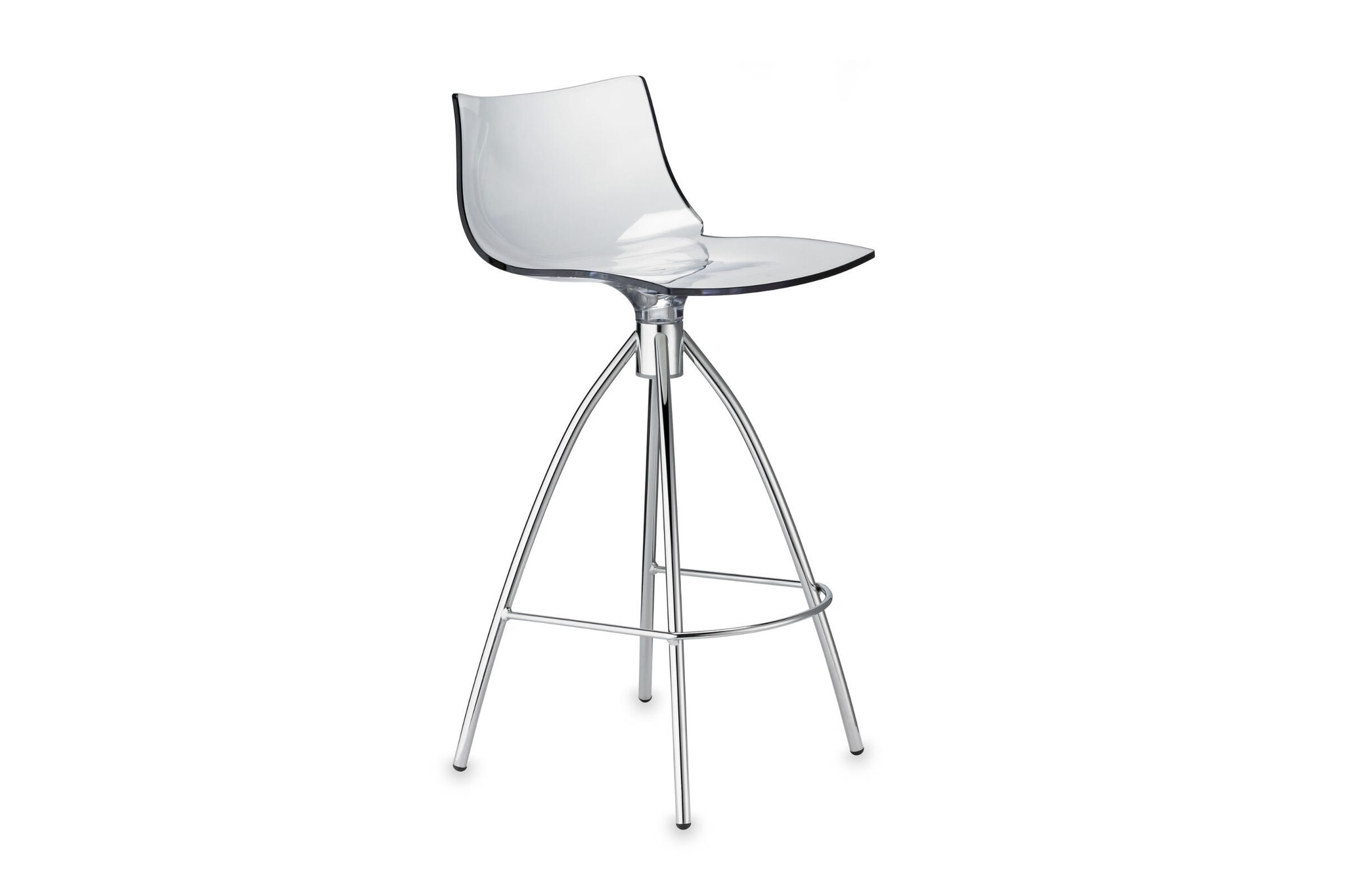 Day Light 65 is een lage kruk op verchroomd 4-pootsframe met een voetensteun en een zitting van polycarbonaat.