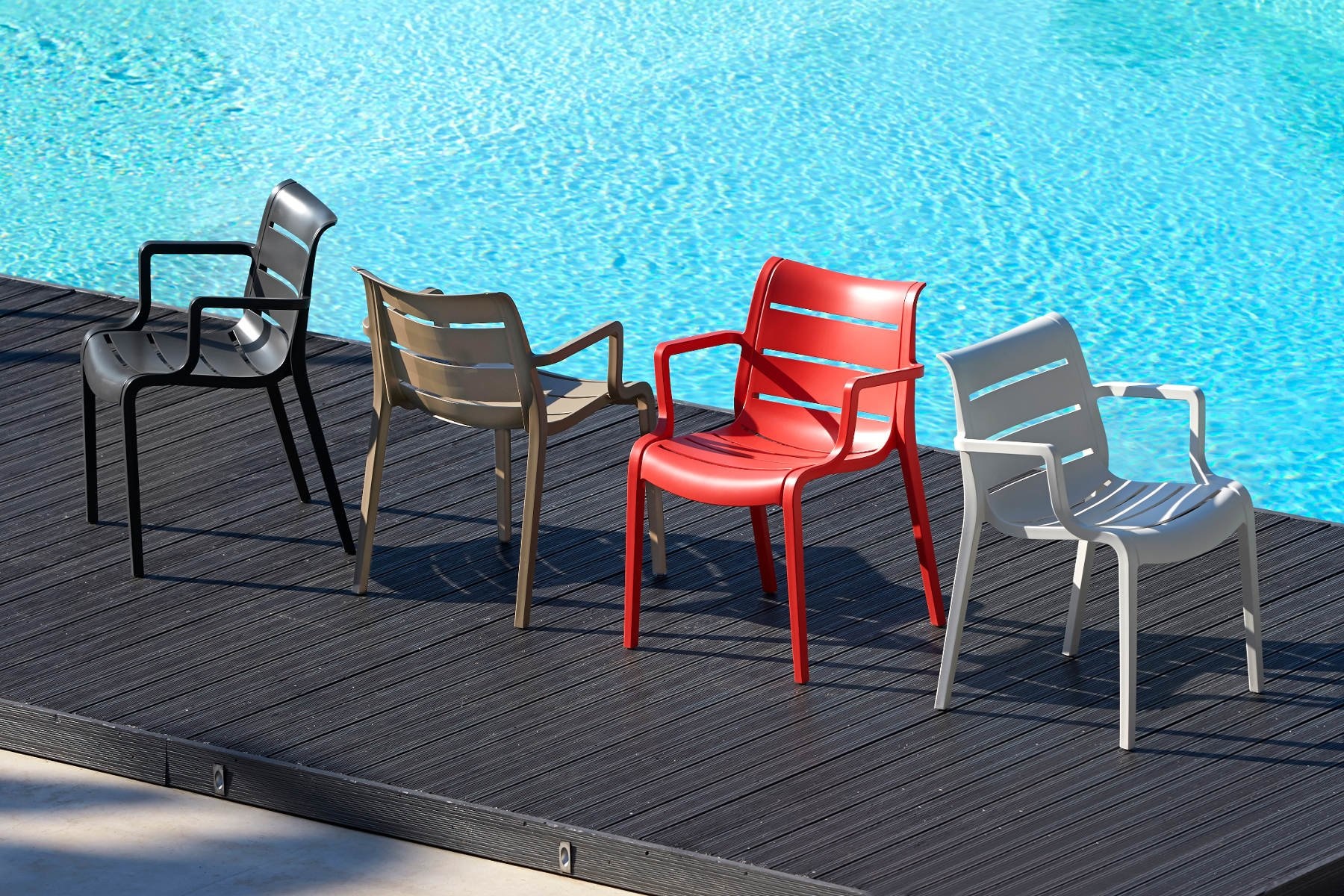 Deze stapelbare stoelen van SCABDesign zijn uitermate geschikt voor buiten op het terras, maar kunnen uiteraard ook binnen geplaatst worden in een bedrijfskantine of andere horecagelegenheid. Kenmerken SCABDesign Sunset stoelen