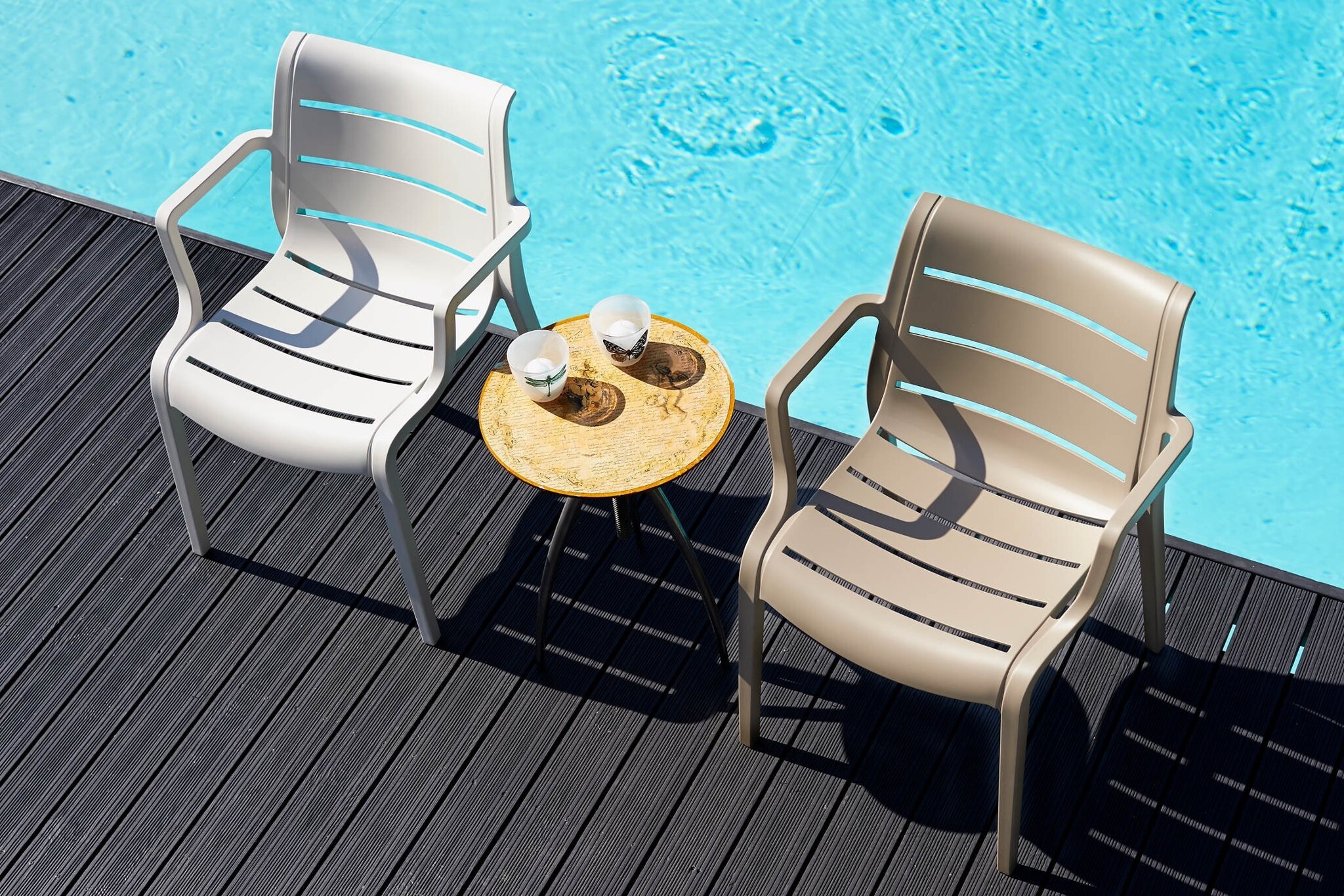 Al sinds 1957 creëert het Italiaanse SCABDesign de mooiste stoelen en tafels, voor binnen en buiten. Voor op kantoor of voor horecagelegenheden. Functioneel en stijlvol. En al die jaren zijn de producten gemaakt van 100% recyclebare materialen. Elke plastic element heeft het merkteken volgens ISO 11469: 2001.