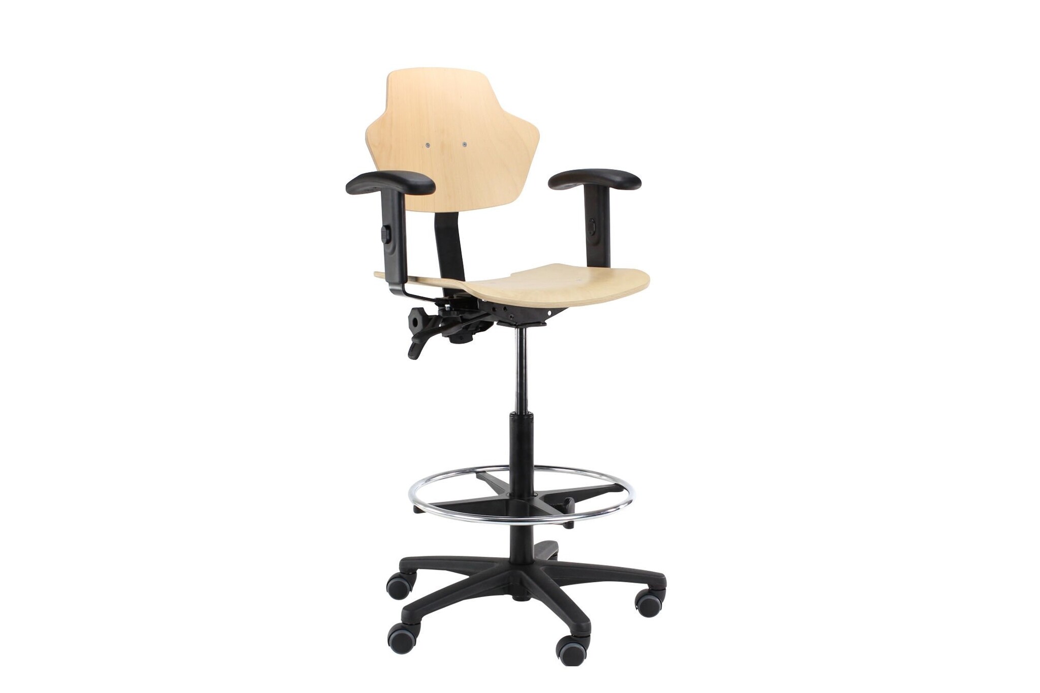 De Spirit 1500 is een robuuste werkstoel met een zitting en rugleuning uitgevoerd in Beuken SP of Pur SP (polyurethaan) die beiden makkelijk te reinigen zijn. Polyurethaan heeft als extra voordeel dat het bestand is tegen de meeste chemische stoffen. Het uitgekiende ontwerp van de rugleuning zorgt voor meer schoudervrijheid tijdens uw werkzaamheden. Voorzien van een oersterk maar lichtgewicht kunststof kruispoot met een diameter van 60 cm.