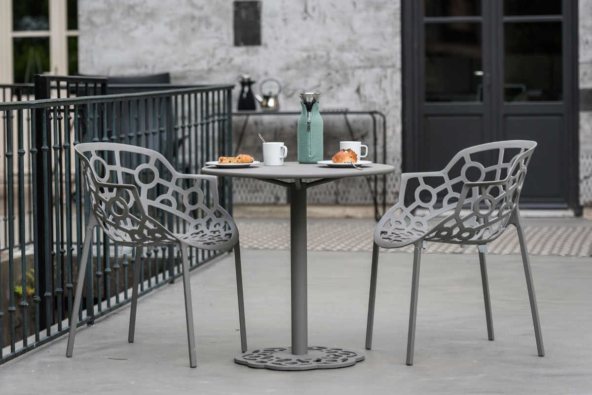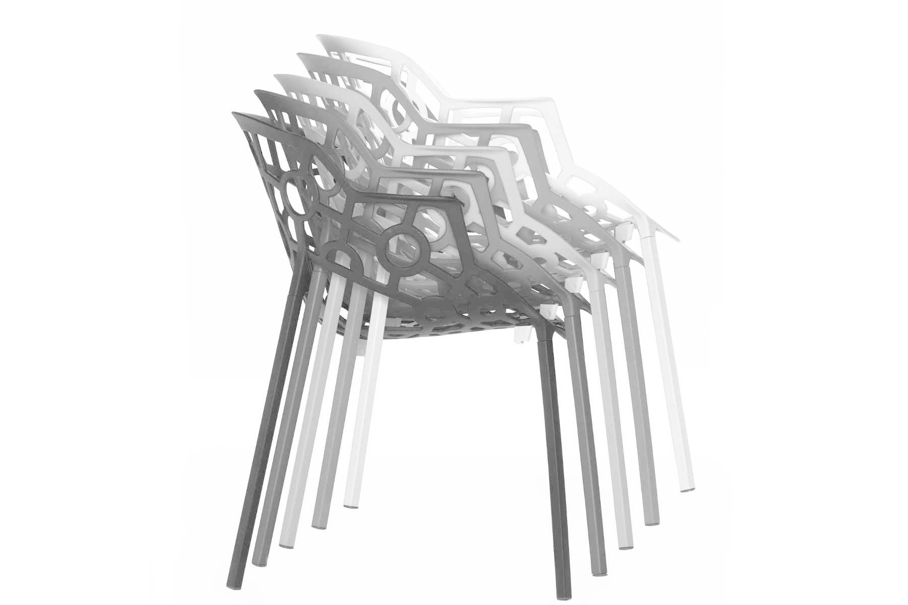Polo is een stapelbare lightgewicht stoel vervaardigd van aluminium van het Italiaanse designmerk Segis. De stoel met haar open gewerkte patroon met geometrische vormen is een geschikte keuze om zowel als binnen- als buitenmeubilair in te zetten. Heeft u een buitenterras of dakterras? Dan kunt u voor een mooi stijlvol geheel dezelfde stoelen ook binnen, voor de inrichting van uw bedrijfsrestaurant of bedrijfskantine, toepassen. Polo is ook beschikbaar als kruk voor aan de bar of hoge tafel. Segis Polo stapelbare stoel, de kenmerken