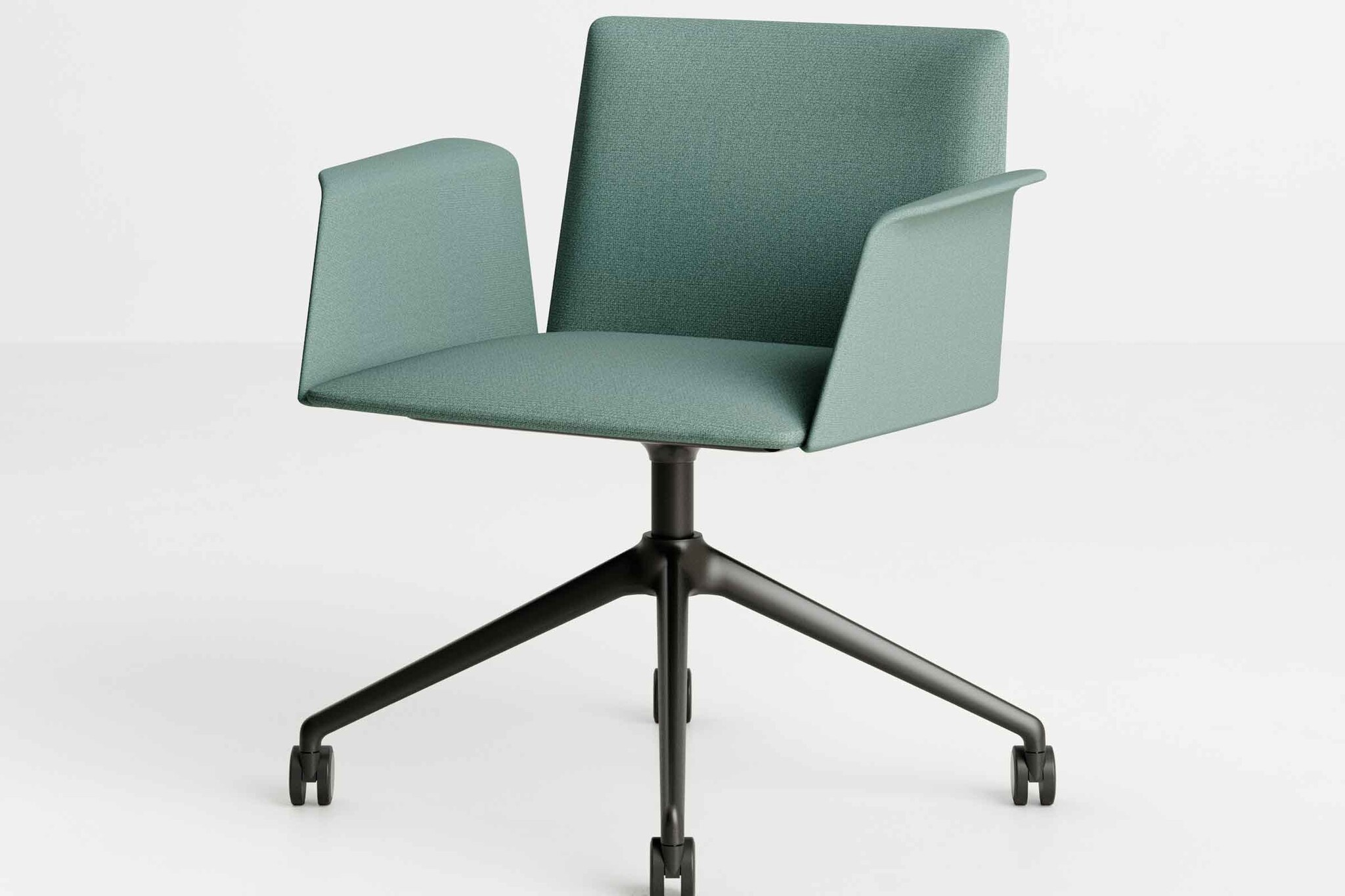 Stoel met spinvoet op wielen en gesloten armleuningen (R0126 en R0127)