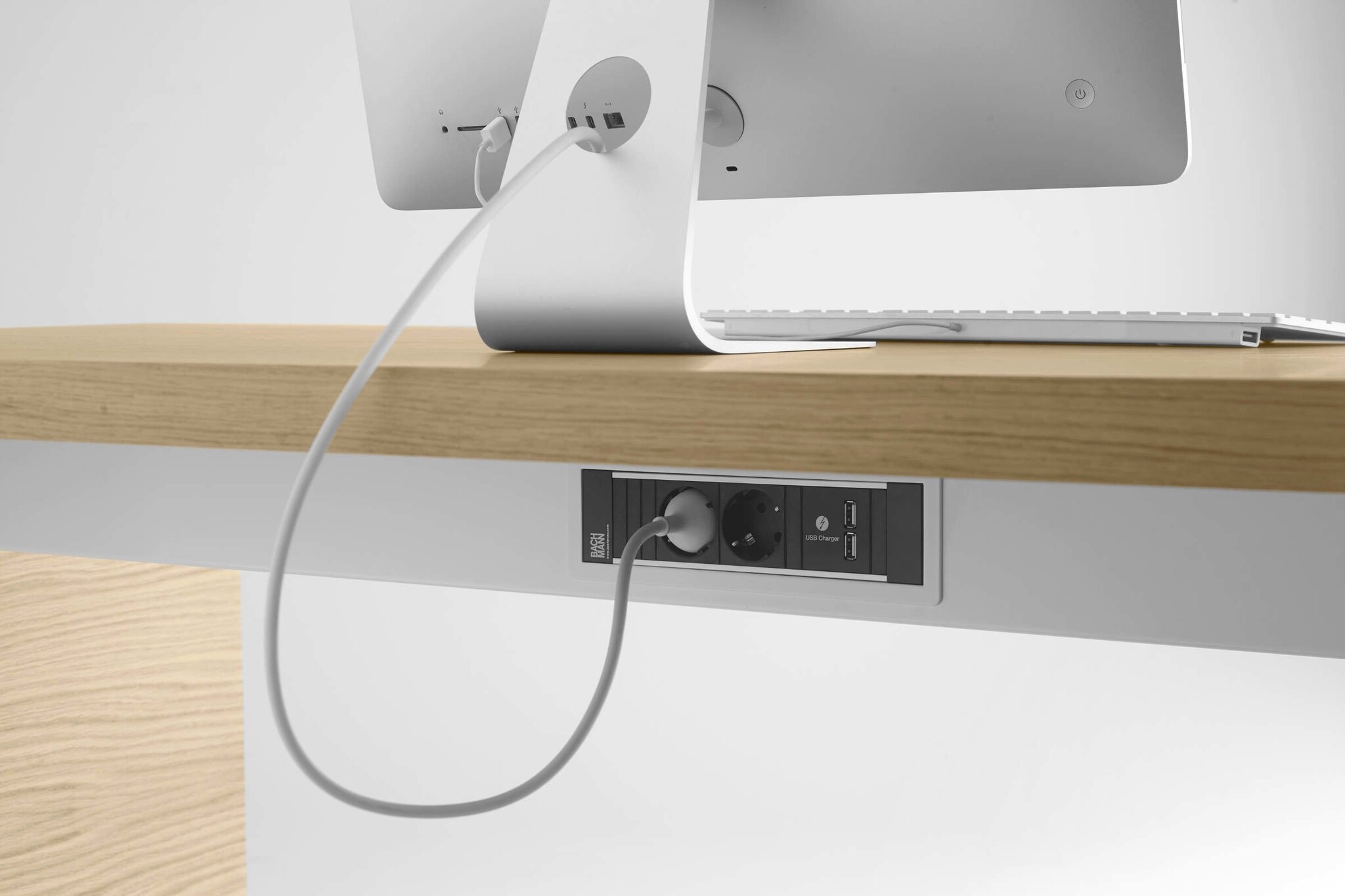 Indien u kiest voor elektrificatie in de tafel, zal dit mooi weggewerkt worden door de kabels in de poten te stoppen. Hierdoor heeft u zowel fysiek als visueel geen last van deze snoeren.