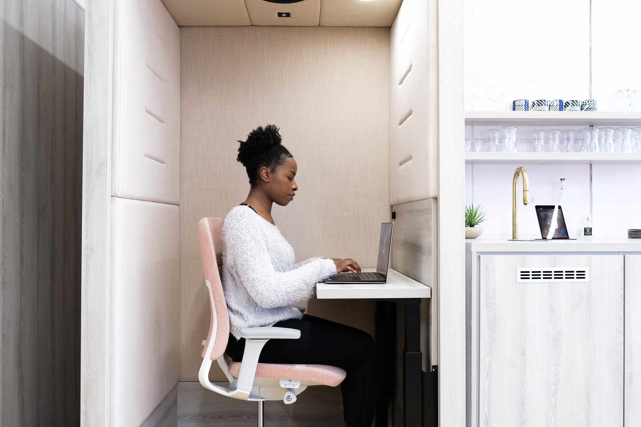 De Spacestor Portals bestaat uit een flexibele familie van productieve ruimtes die tegemoetkomen aan de keuze van de werknemer door middel van een verscheidenheid aan individuele werkstijlen. Zo blijf u verbonden met de drukte, zonder afgeleid te worden. U kunt ervoor kiezen om staand in de Portals te werken of zittend op de bijgeleverde zitting of bureaustoel. Het tafelblad is op een vaste hoogte of in hoogte verstelbaar, zodat u eenvoudig kunt afwisselen tussen zittend en staand werk. Bring your own