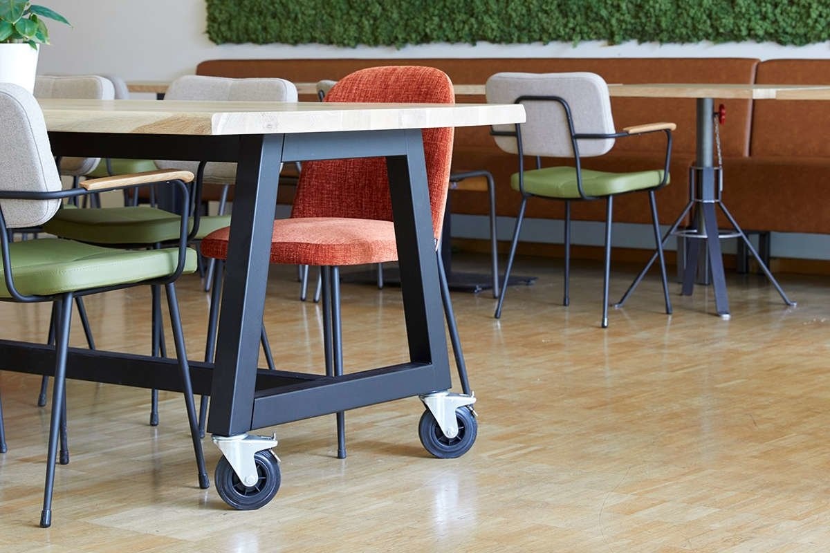 Omdat de tafel ter verrijden is, kunt u er vele kanten mee op. Zo plaatst u de Spoinq Bo tafel in een vergaderruimte of in een bedrijfskantine. Heeft u meer ruimte nodig? Dan verplaatst u eenvoudig de tafel naar een andere plek.